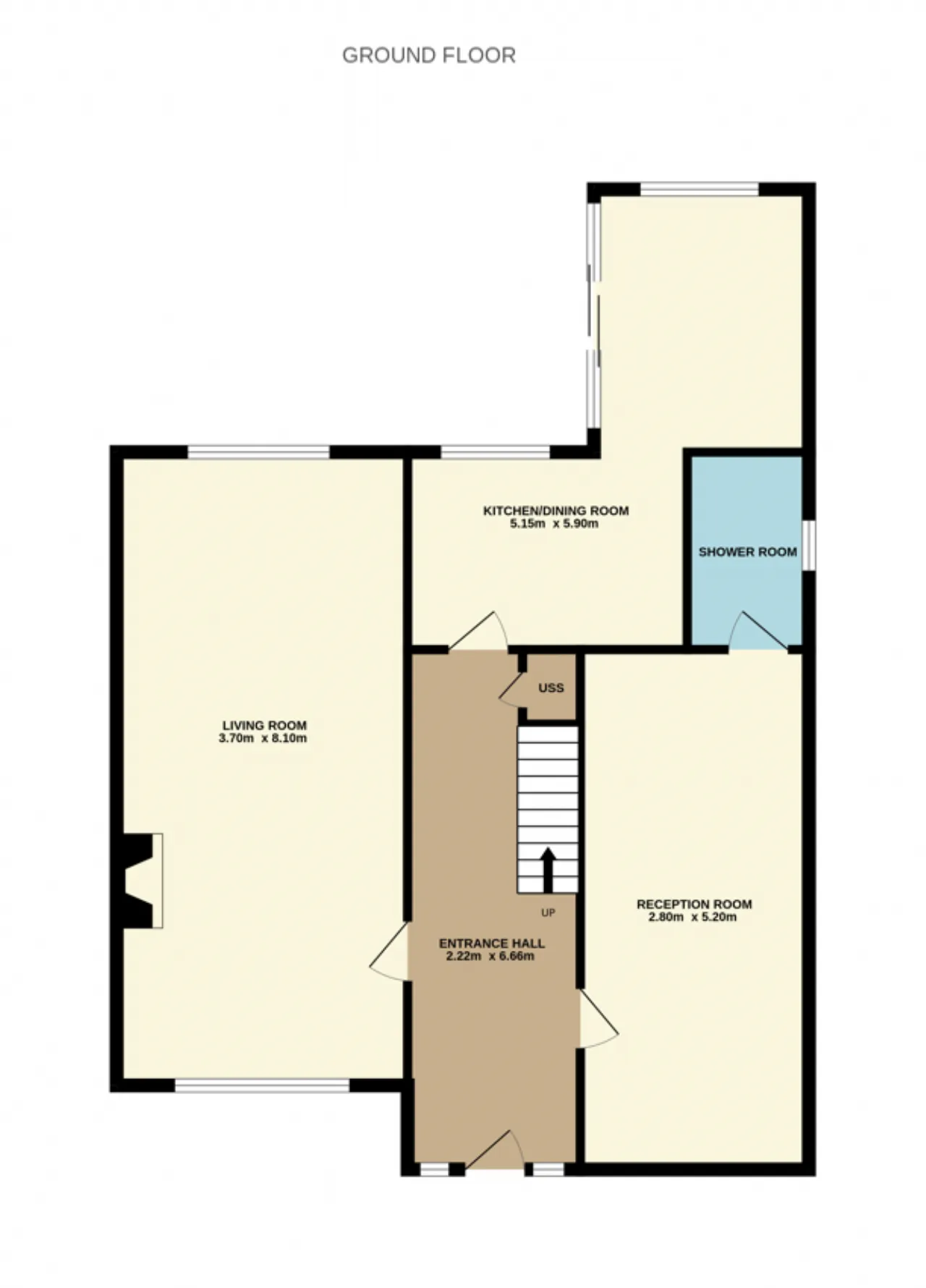 Reception Room 2.80m x 5.20m Solid oak flooring and door and window to front.