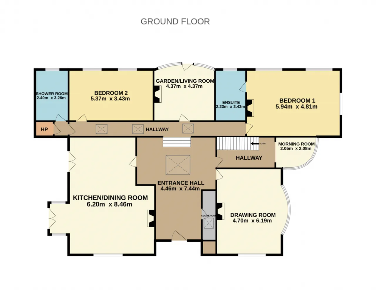Bedroom 2 5.37m x 3.43m Located to the rear of the property with fitted wardrobes, carpet flooring, cast iron fireplace and coved ceiling and centre rose.