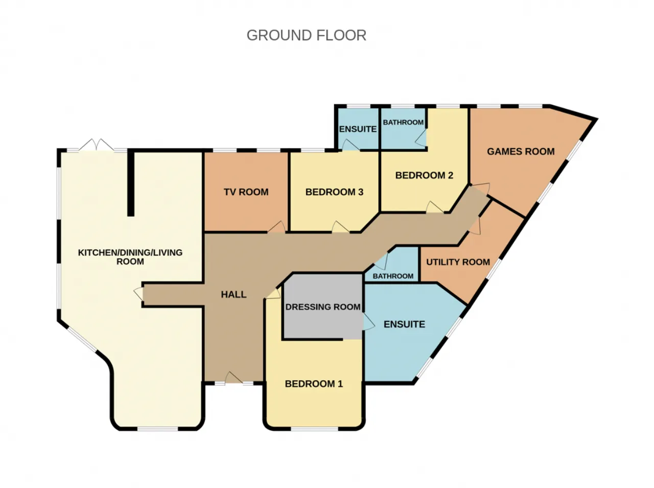 Bedroom 1 5.13m x 4.30m Large double room, feature curved walls and a dressing room.