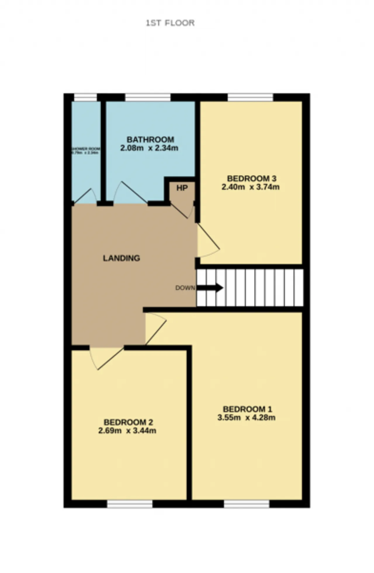 Shower Room 2.34m x 0.79m Fully tile, heated towel rail, shower