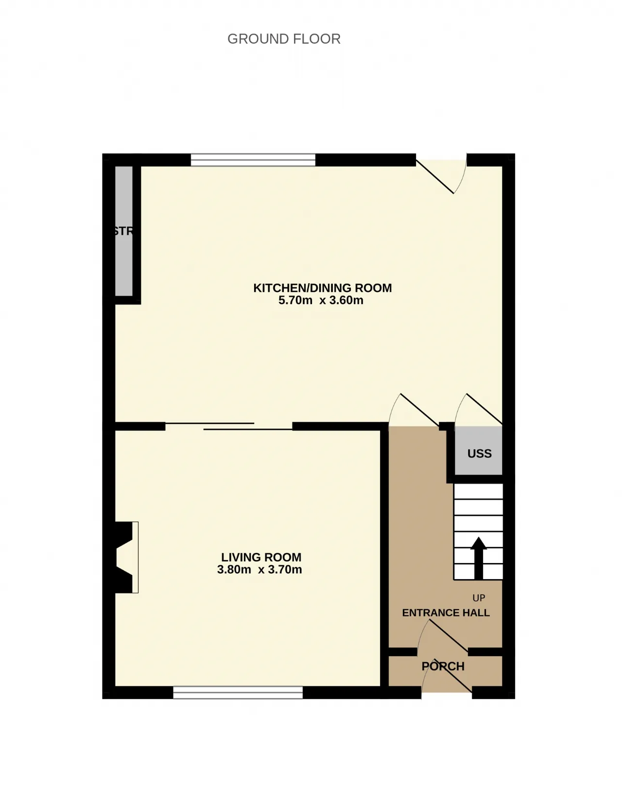 Kitchen Dining Room 5.7m x 3.6m Solid timber flooring under linoleum and access to the rear garden and side entrance.