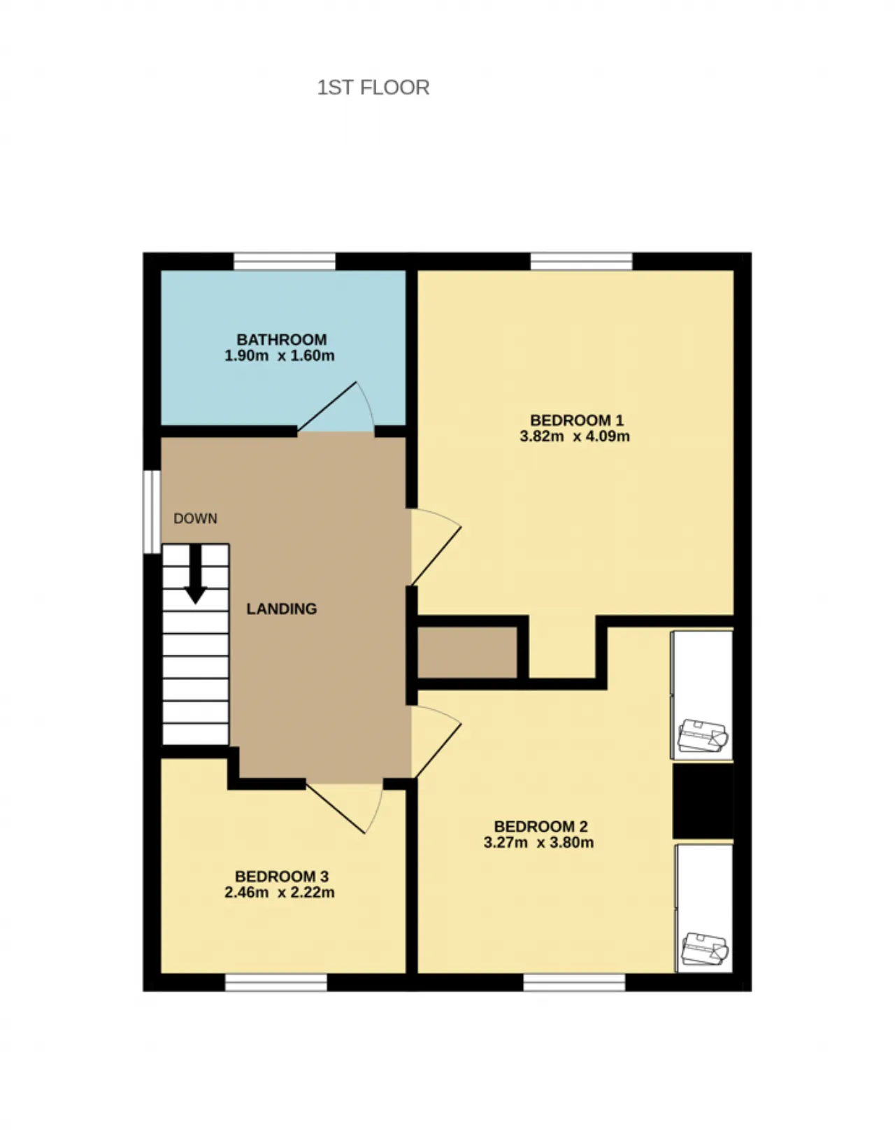 Bedroom two 3.80m x 3.27m Located to the front of the property with carpet flooring and built in wardrobes.