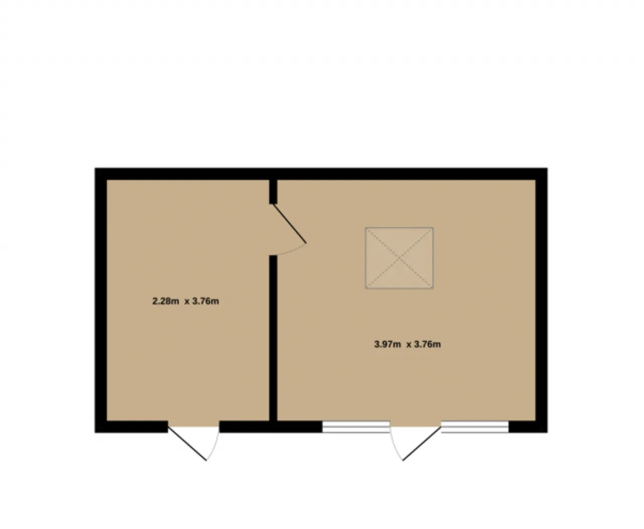 Living room 3.56m x 3.68m Bright and spacious room with wooden flooring and stove.