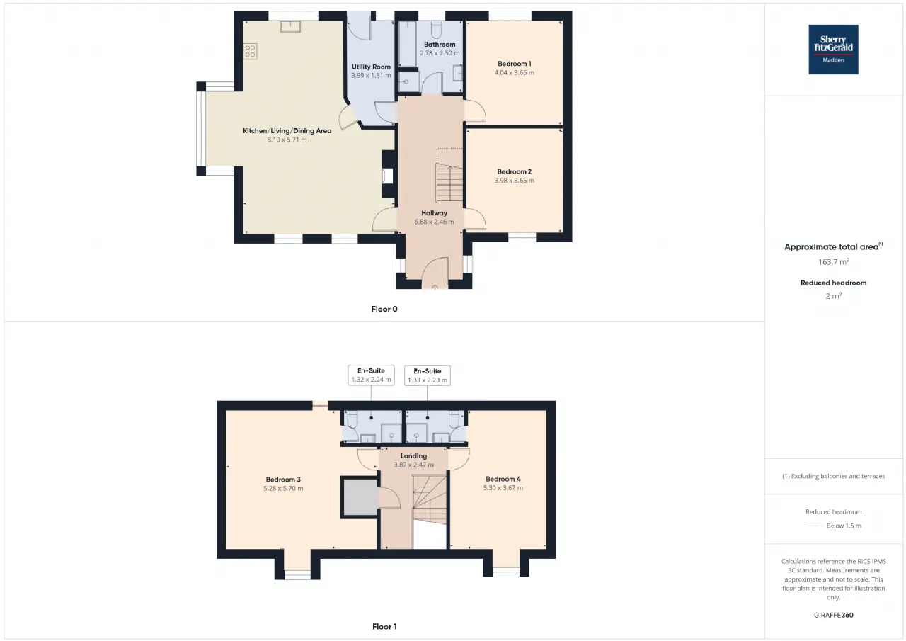 Bedroom 4 5.30m x 3.67m Rear aspect skylight, front aspect window, carpet flooring En-suite: 1.33m x 2.23m whb/wc/shower, laminate flooring