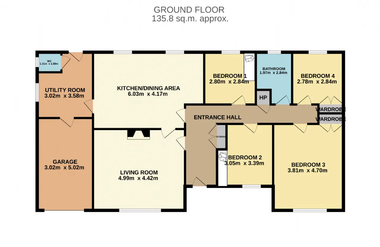 The bright and generously proportioned accommodation comprises a welcoming entrance hall, a spacious living room complete with a solid fuel stove, and a well-appointed kitchen/dining area featuring an oil-fired range. Additional accommodation includes a utility room, guest WC, garage, four large bedrooms, and a family bathroom.