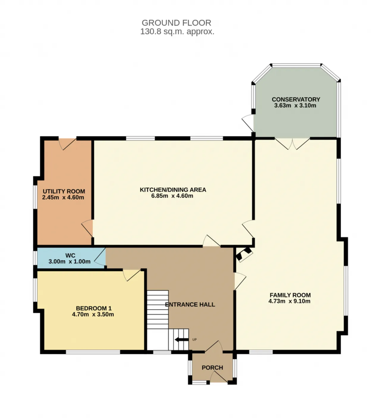 Kitchen Dining Room: Upgraded in recent years, centre island, tiled floor, integrated double oven, hob & fridge freezer, plumbed for dishwasher, south facing rear windows.