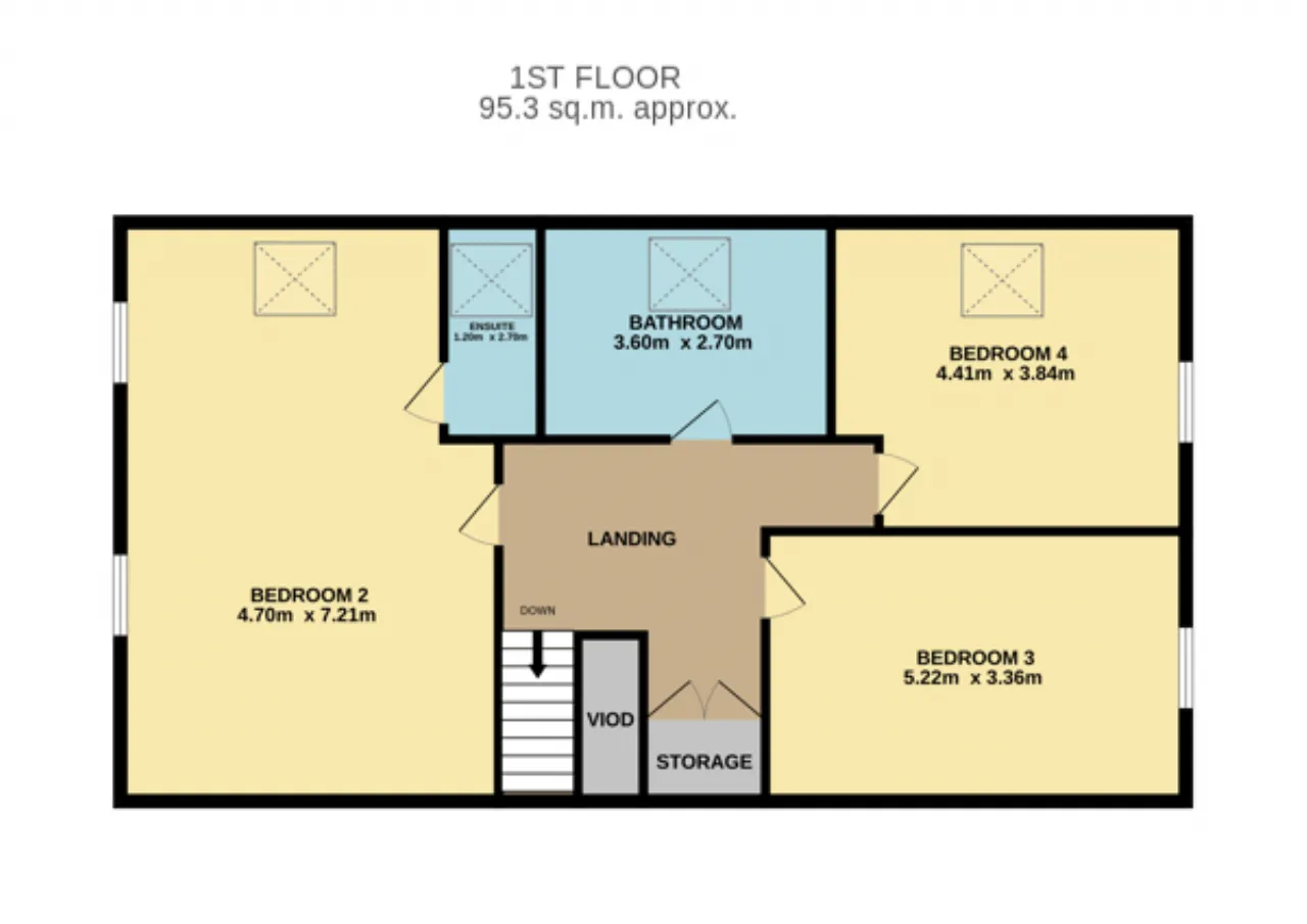 Bedroom 4: Pine floor, tv point, side aspect window, skylight.