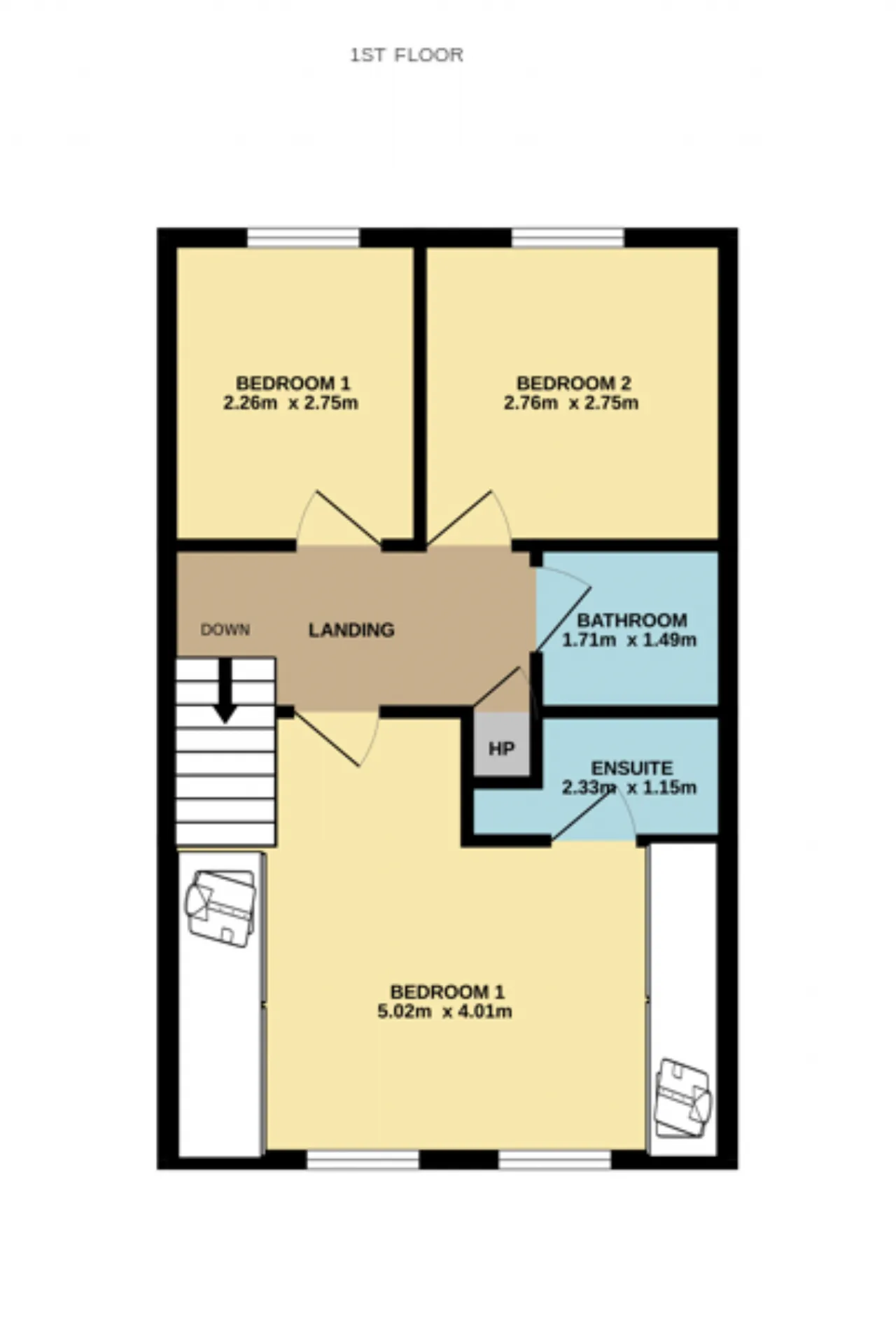Bedroom 2: Double room with carpet floor, rear aspect window, fitted wardrobes.