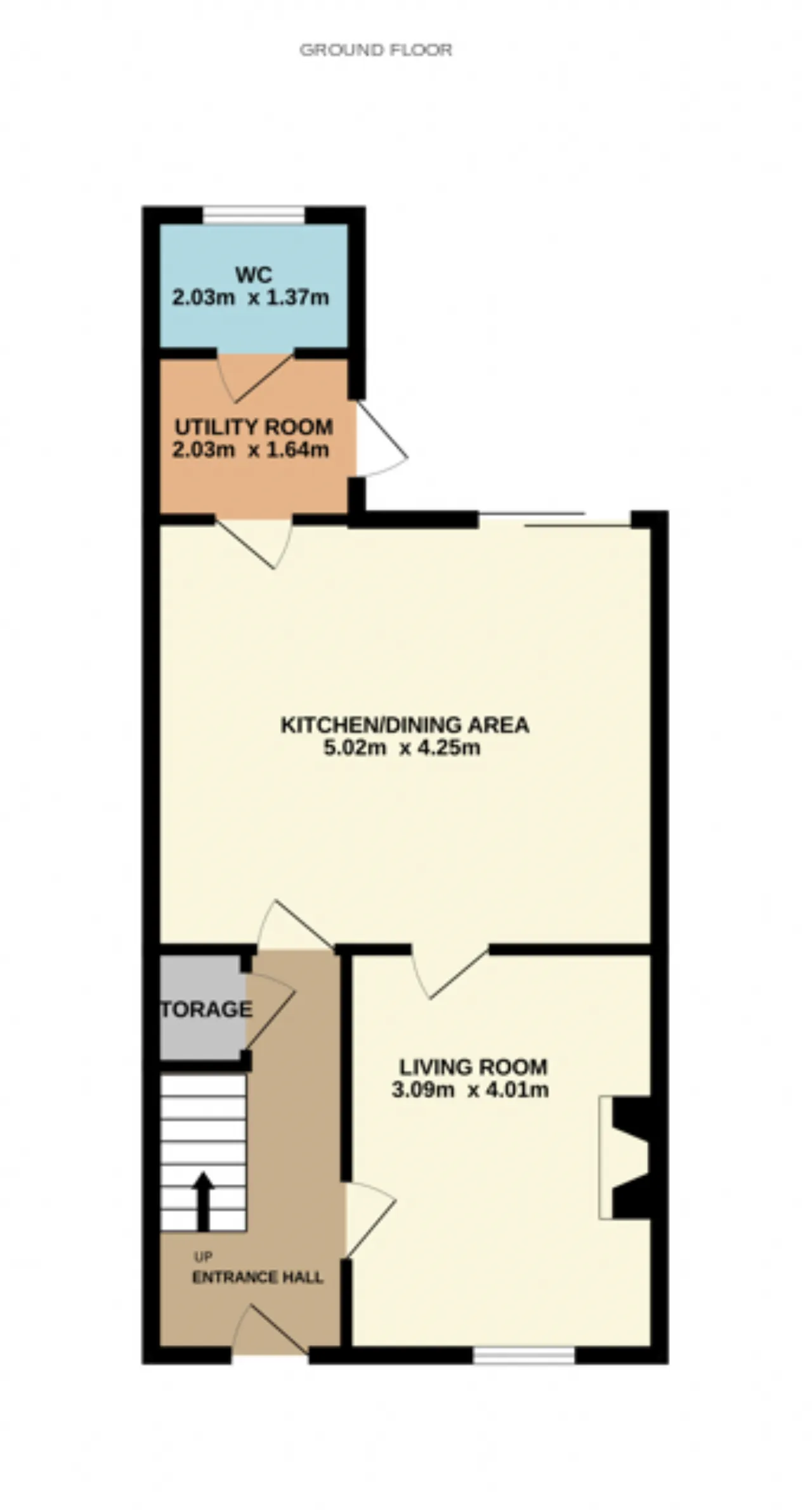 The property is in excellent condition throughout and offers generously proportioned living space. The ground floor accommodation comprises a welcoming entrance hall, a bright living room with a solid fuel fireplace, a spacious kitchen/dining area with access to a private rear garden, a separate utility room, and a guest WC. Upstairs, there are three well-sized bedrooms, one of which is en-suite, along with the main bathroom.