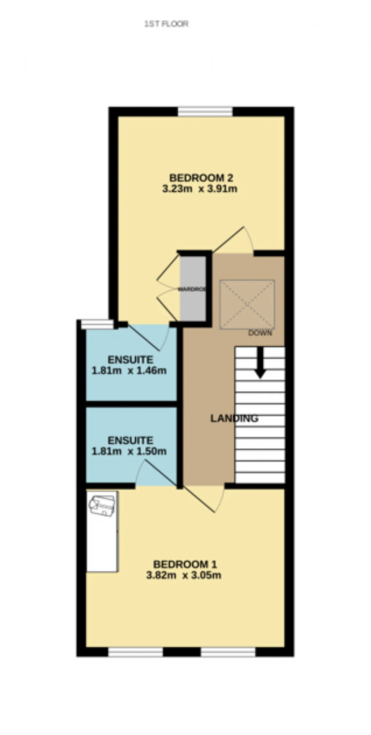 Bedroom 1: Spacious double room to the front with two front aspect windows, carpet floor, fitted wardrobes.