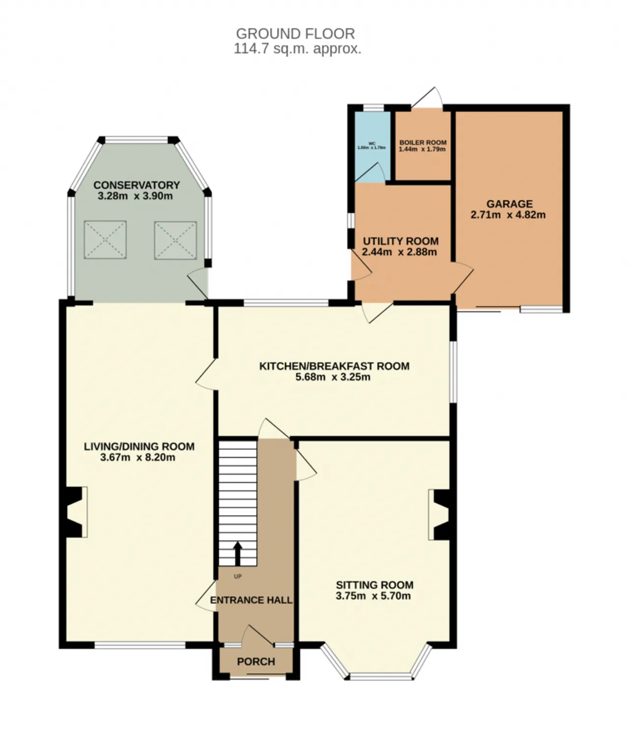 Conservatory: Semi solid timber floor, two velux windows, access to rear garden.