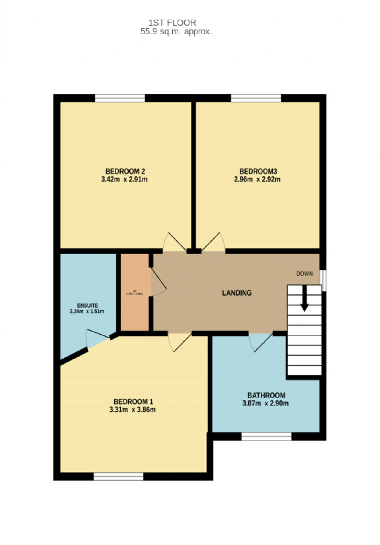 Landing: Carpet stairs and landing, side aspect window, stira stairs to attic space, shelved hotpress.
