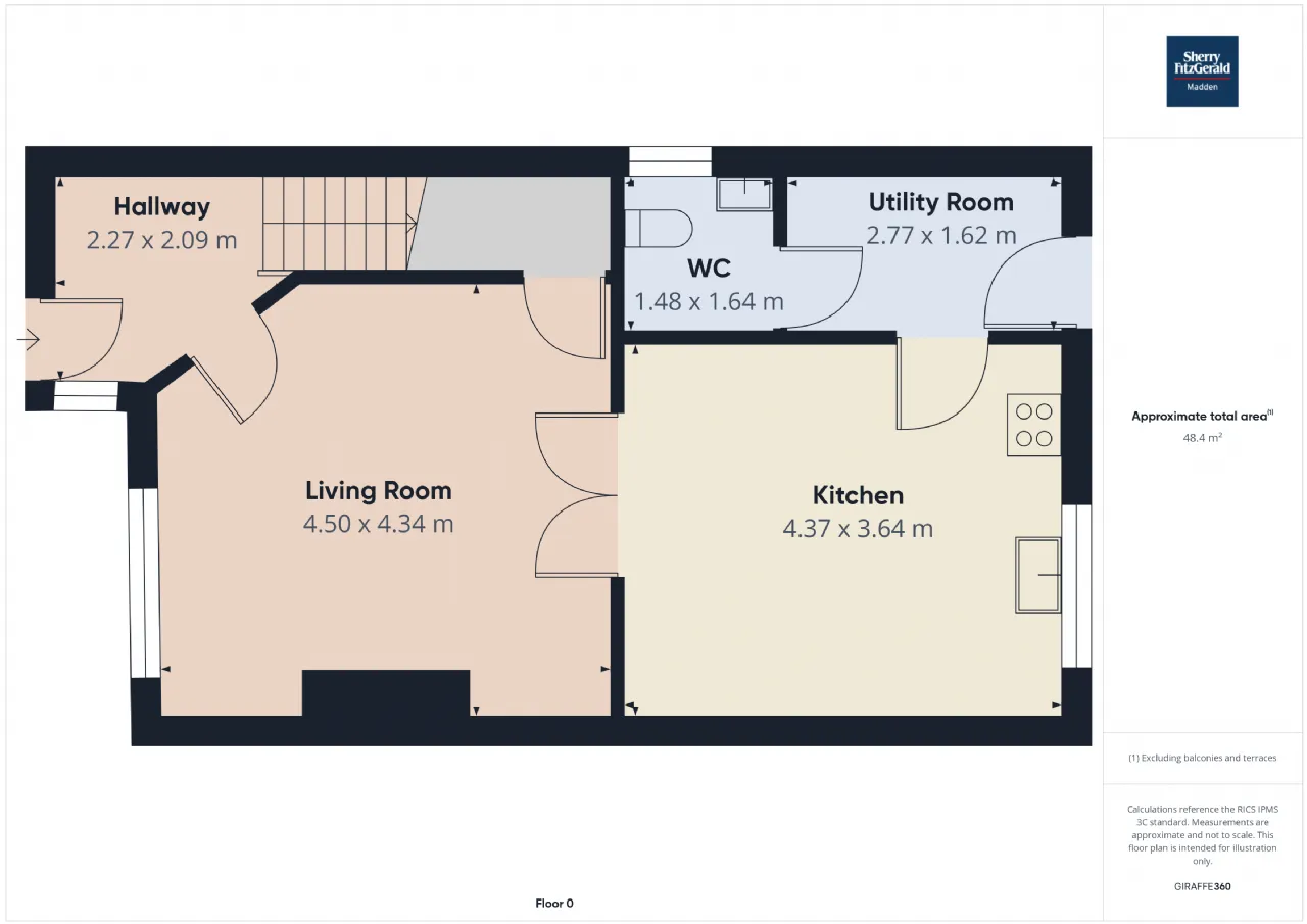 Groundfloor wc 1.48m x 1.64m Side aspect window, whb/wc, tile flooring