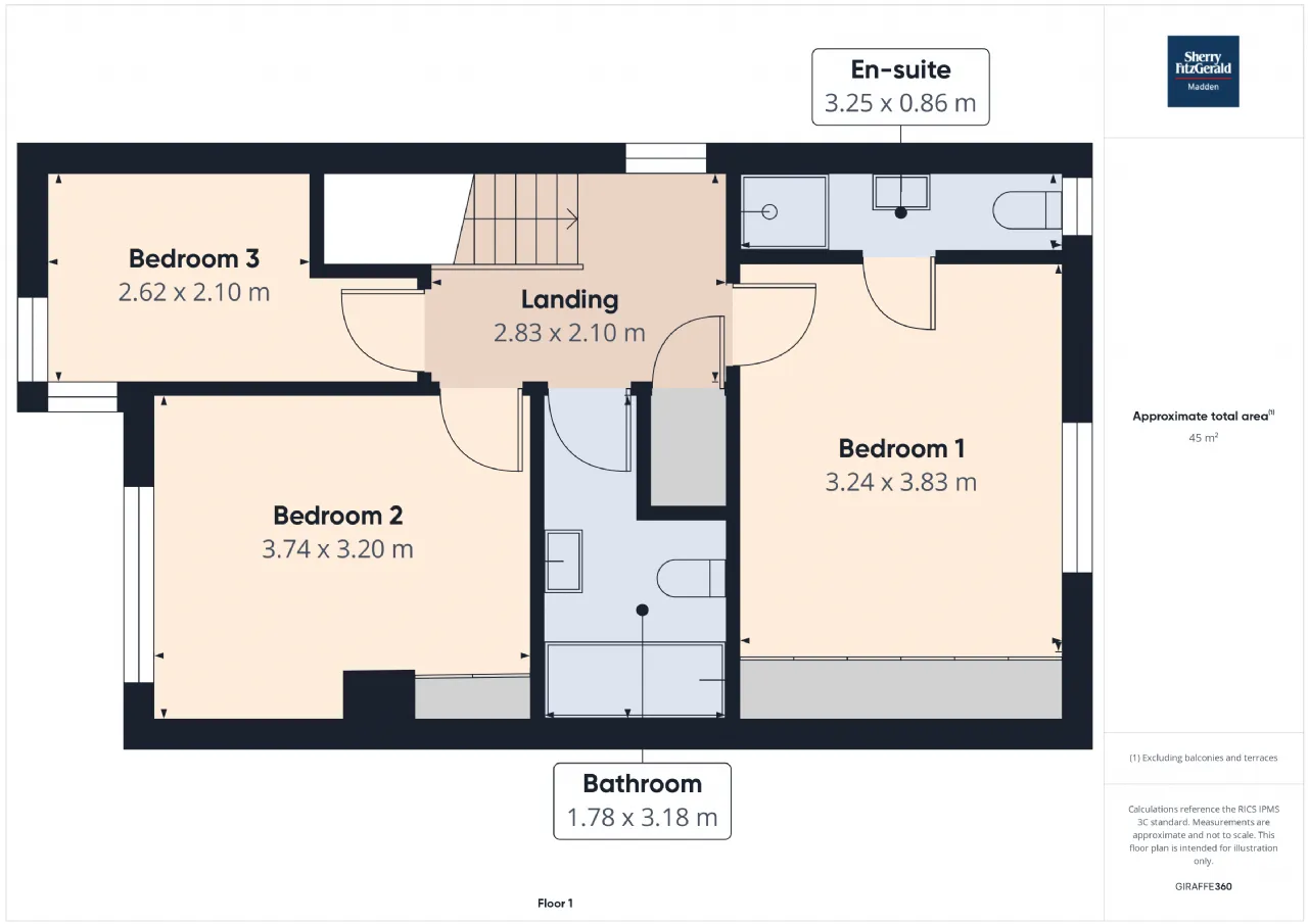 Bedroom 1 3.24m x 3.83m Rear aspect window, built-in storage, wooden flooring -En-suite: 3.25m x 0.86m - Rear aspect window, whb/wc/electric shower, fully tiled
