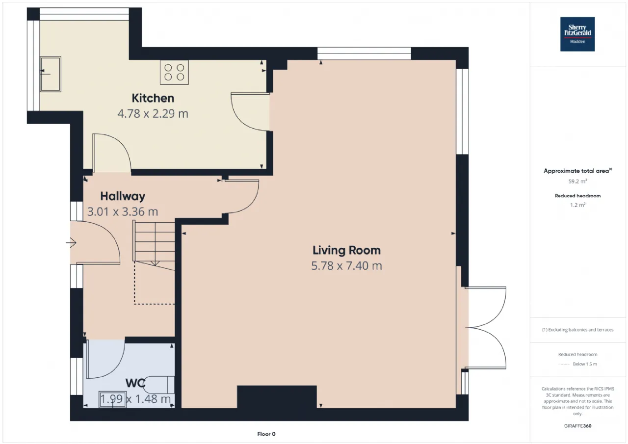 Ground floor wc 1.48m x 1.99m Front aspect window, whb/wc, floor to ceiling tiling