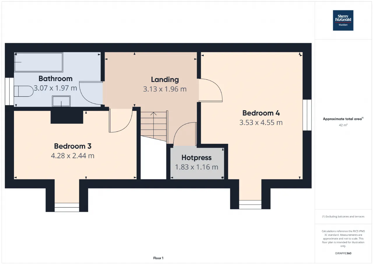 Bedroom 3 4.28m x 2.44m Front aspect window, wooden flooring