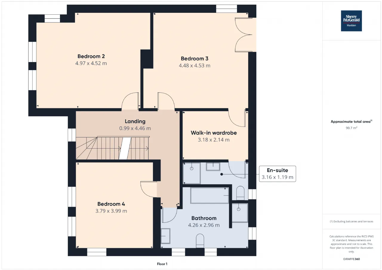 Bedroom 3 (Master) 4048m x 4.53m Side aspect window, French door to balcony, carpet flooring Walk-in wardrobe: 3.18m x 2.14m - Wooden flooring En-suite: 3.16m x 1.19m - Rear aspect skylight,whb/wc/shower