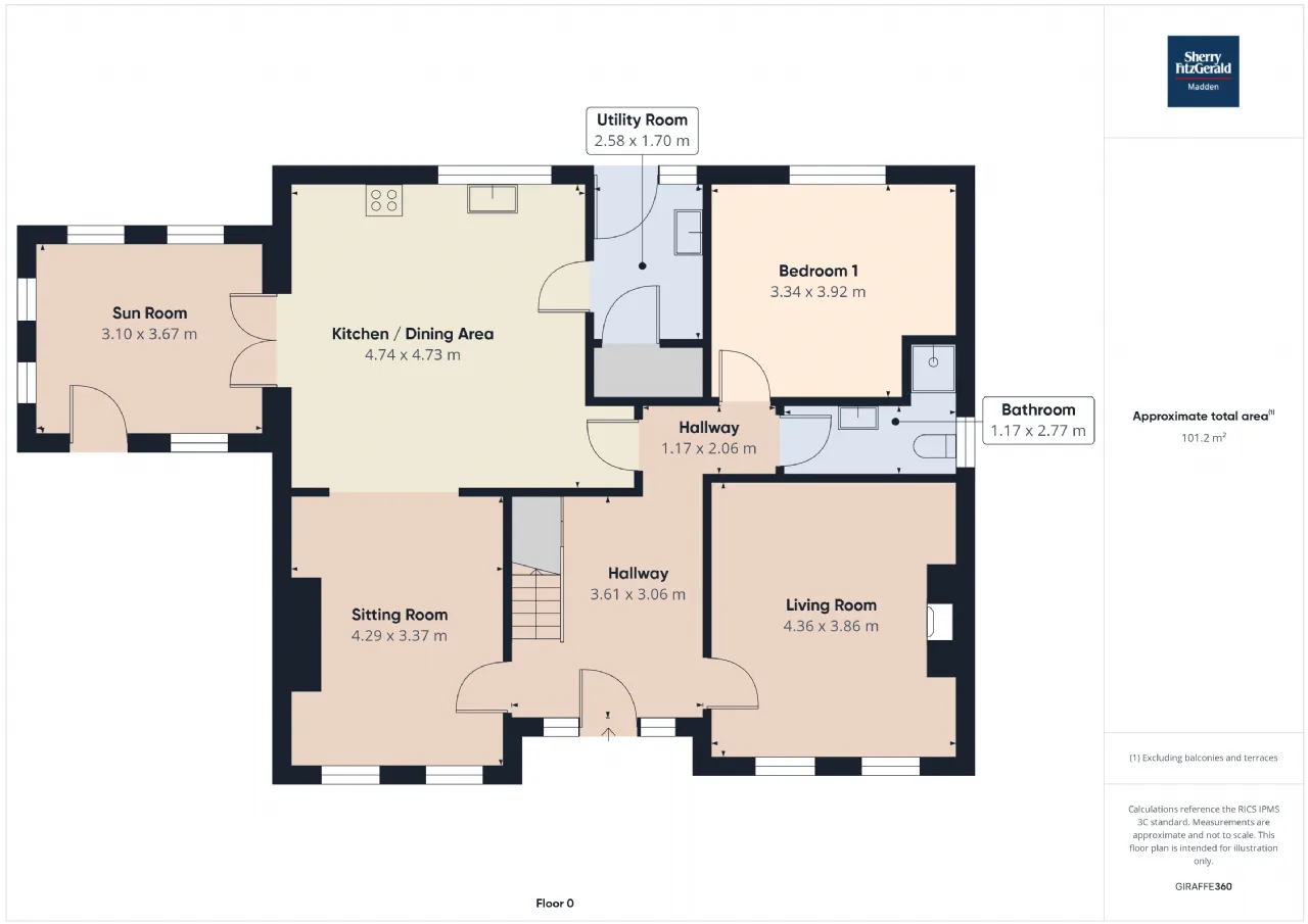 Sun Room 3.10m x 3.67m Dual aspect windows, side aspect door, wooden flooring