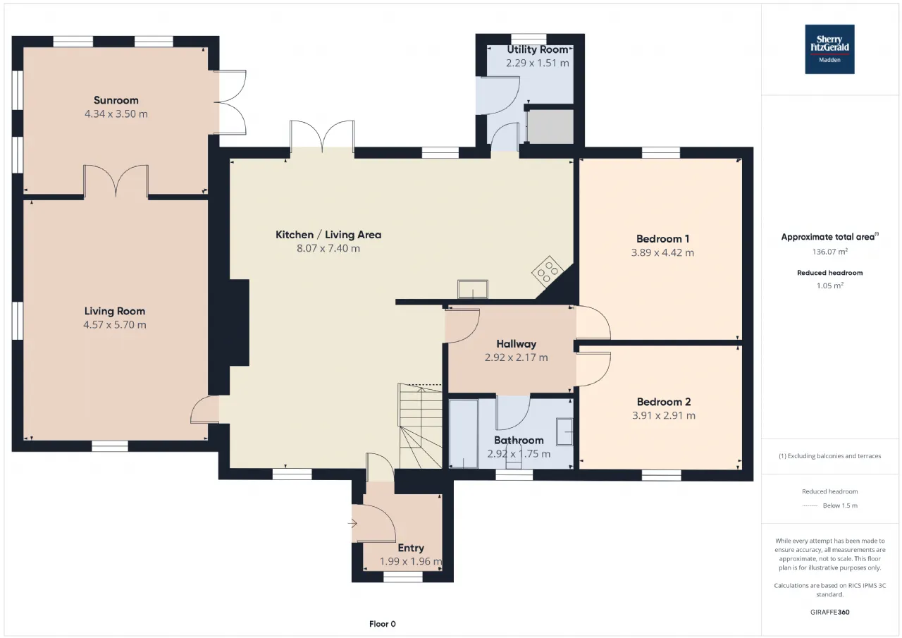 Sun Room 3.48m x 4.48m Side and rear aspect windows, velux window, double doors to rear patio, tile flooring