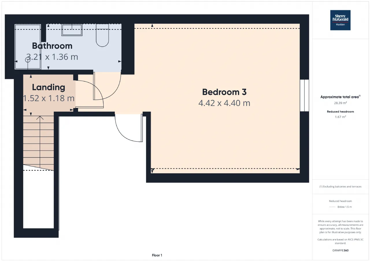 Bedroom 3 (Master) 4.39m x 6.41m Side aspect window together with velux windows, wooden flooring Walk-in-wardrobe - 1.67m x 2.38m - Wooden flooring