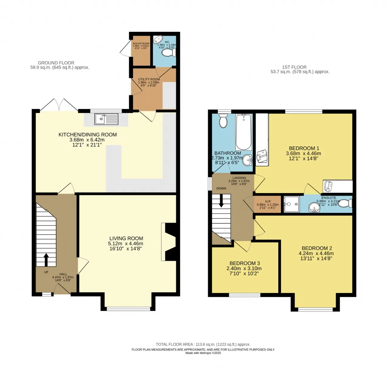 Downstairs WC 1.48 x 1.18m Tiled floor Fitted with WC and WHB