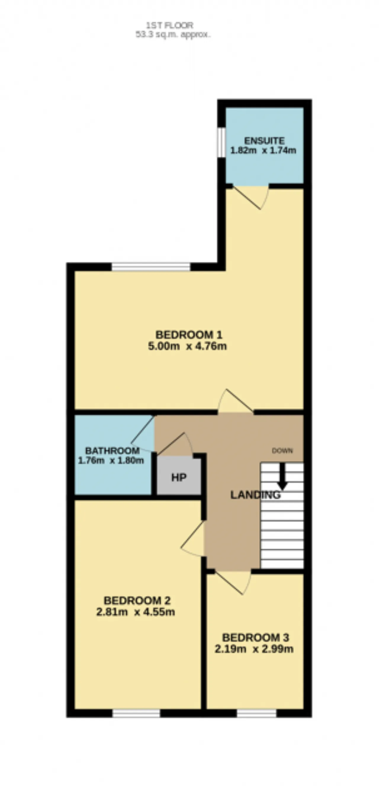 Bedroom 3: Carpet flooring, fitted wardrobe, front aspect window.