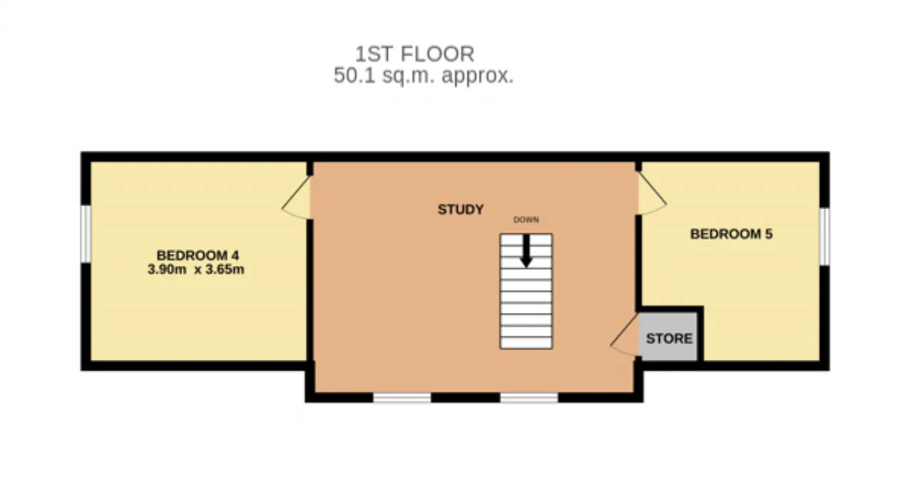 Constructed circa the late 1960s, the property is laid out over two floors with beautiful views and natural light from the main living spaces and 2 ground floor bedrooms. There are 3 further bedrooms, 2 on the upper floor with a large study area. The spacious, open plan kitchen dining area leads through to the rear garden which is private and not overlooked. The property has been well-maintained by the owner but it would benefit from modernisation.