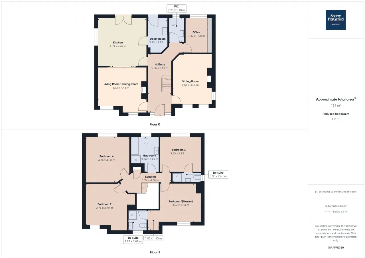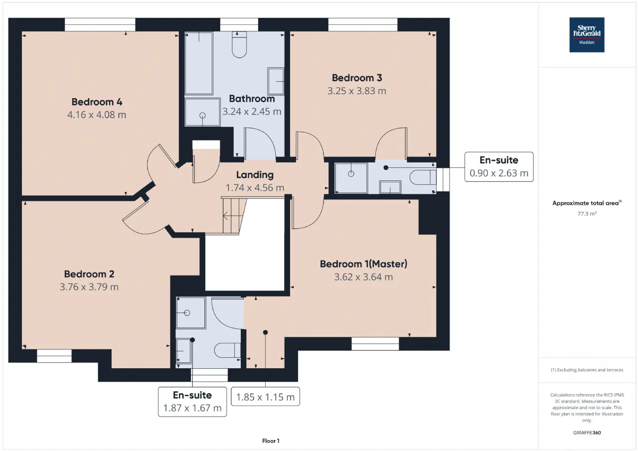 Bedroom 1 (Master) 3.62m x 3.64m Front aspect window, fitted wardrobe, wooden flooring -En-suite - 1.87m x 1.67m - Front aspect window, whb/wc/shower, floor to ceiling tiling