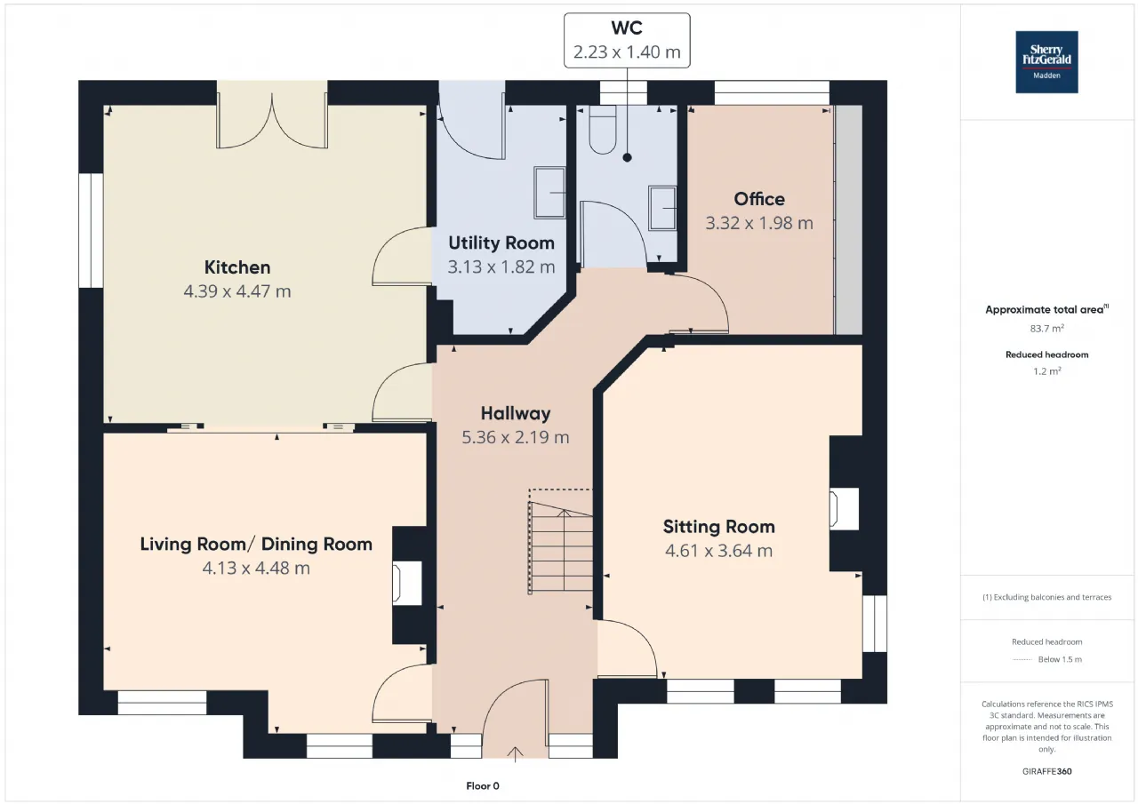 Groundfloor wc 2.23m x 1.40m Rear aspect window, whb/wc, walls partially tiled, tile flooring