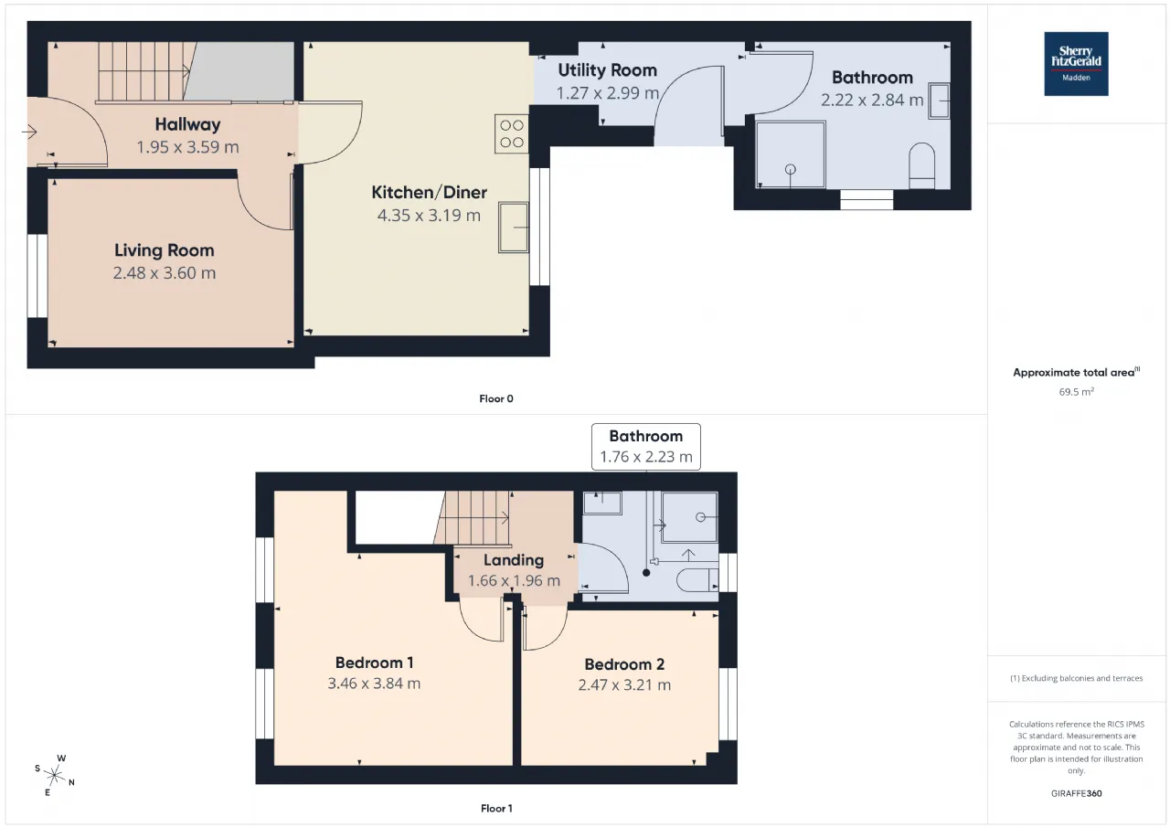 The residence offers accommodation over two floors including living room, kitchen/diner, 2 bedrooms and 2 bathrooms.