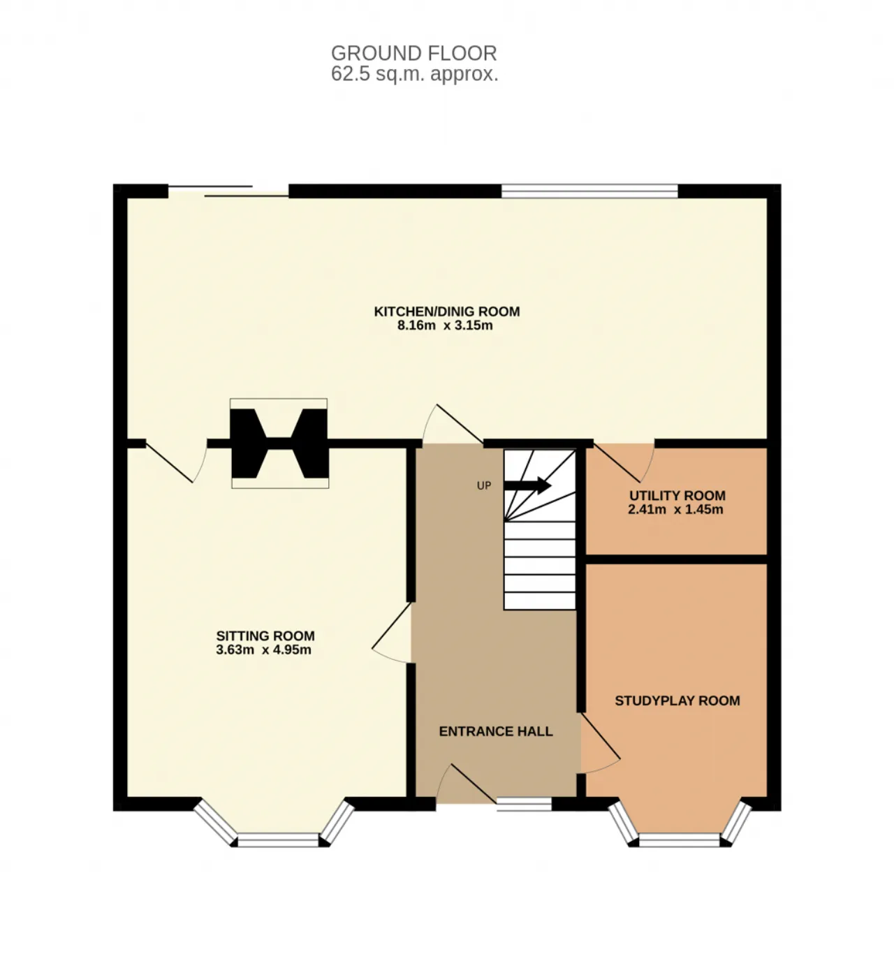 Study: Laminate floor, bay window.