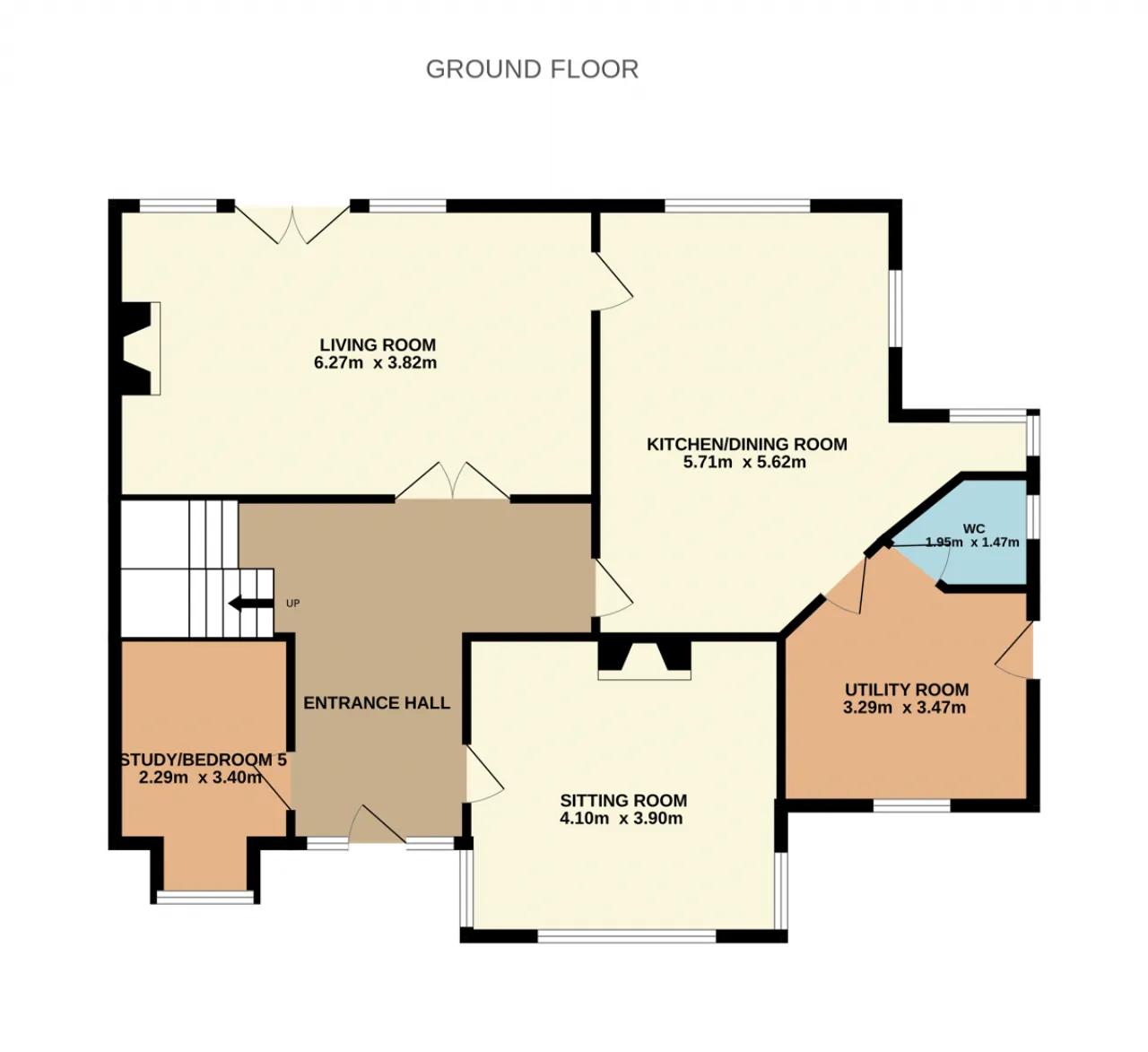 Study/Bed 5: Laminate wooden floor, front aspect window.