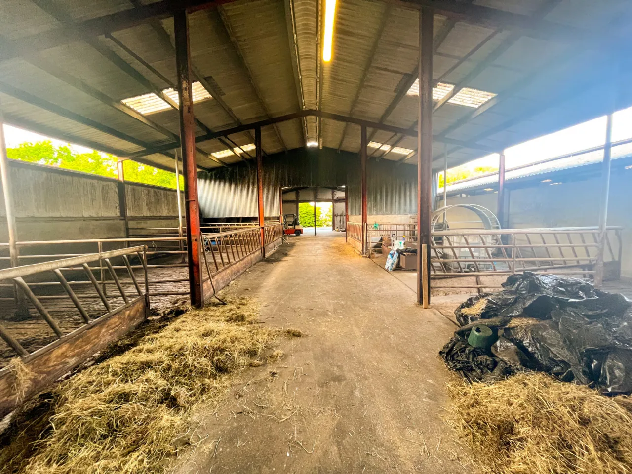 Extensive yard with modern farm buildings.