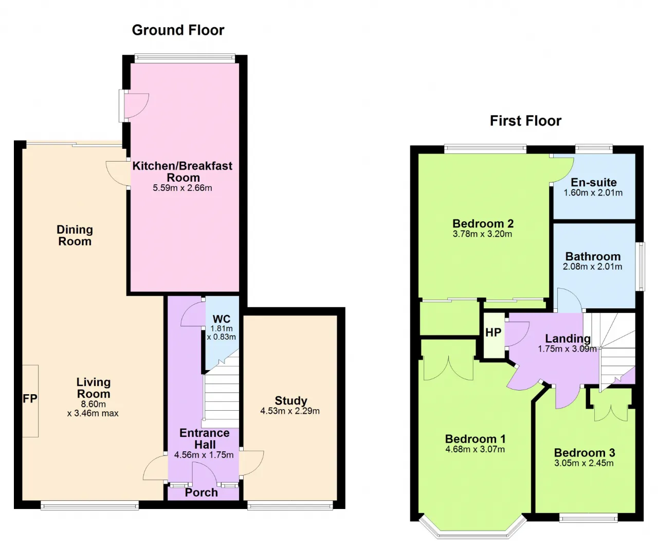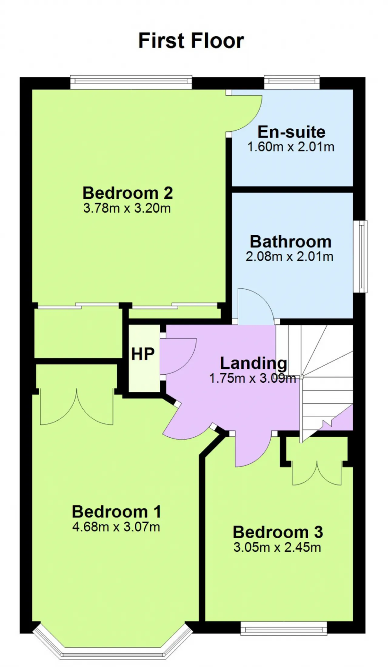 Bedroom 1 4.68m x 3.07m With solid wood flooring. Fitted wardrobe. En-suite off same.