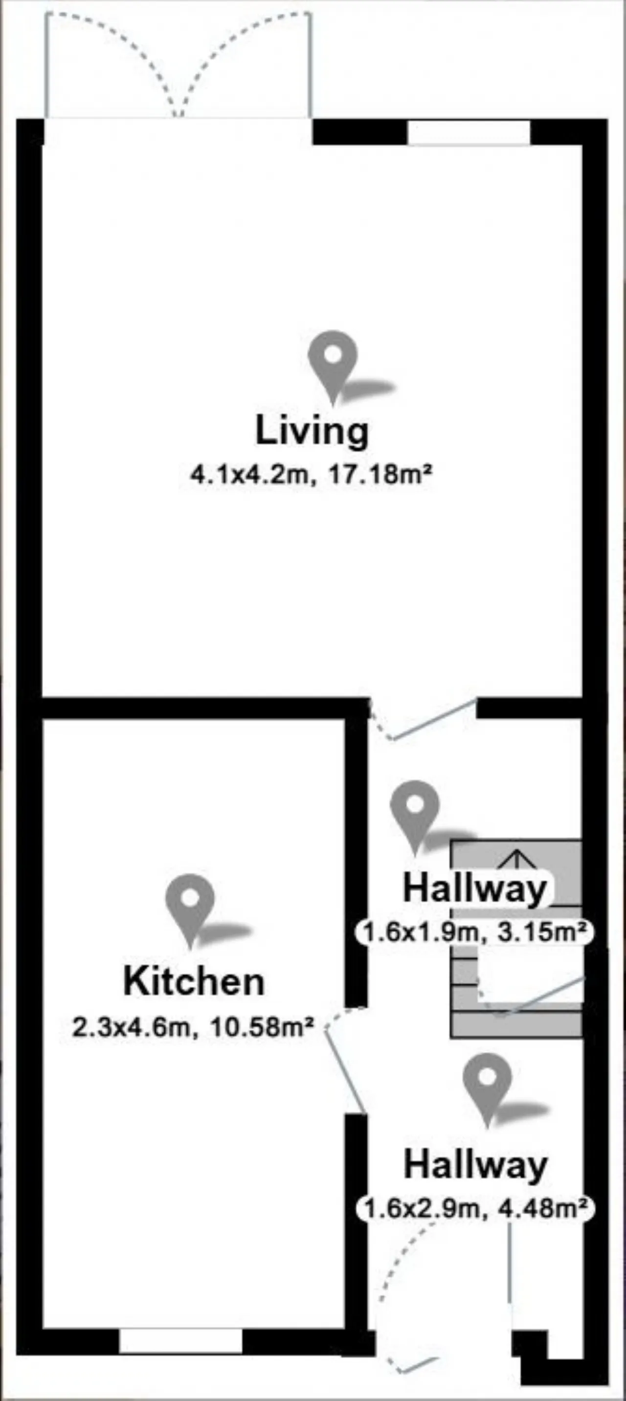 Living Room 4.2m x 4.1m With solid wood flooring Feature fire place with wood surround, inset stove. Large window and French doors leading to the rear garden.
