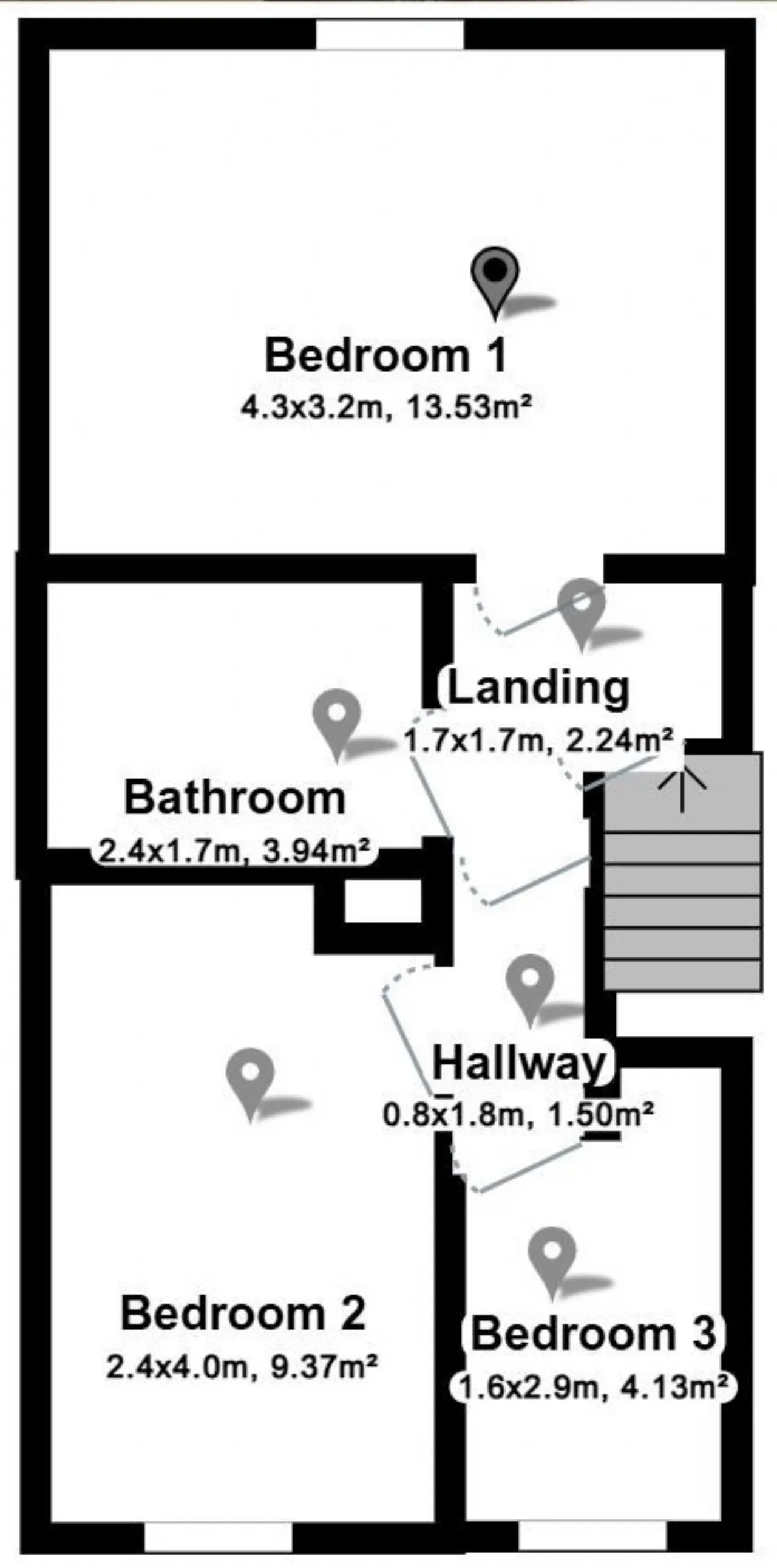 Landing 3.5m x 2.5m With Laminate flooring. Hot press housing hot water cylinder.