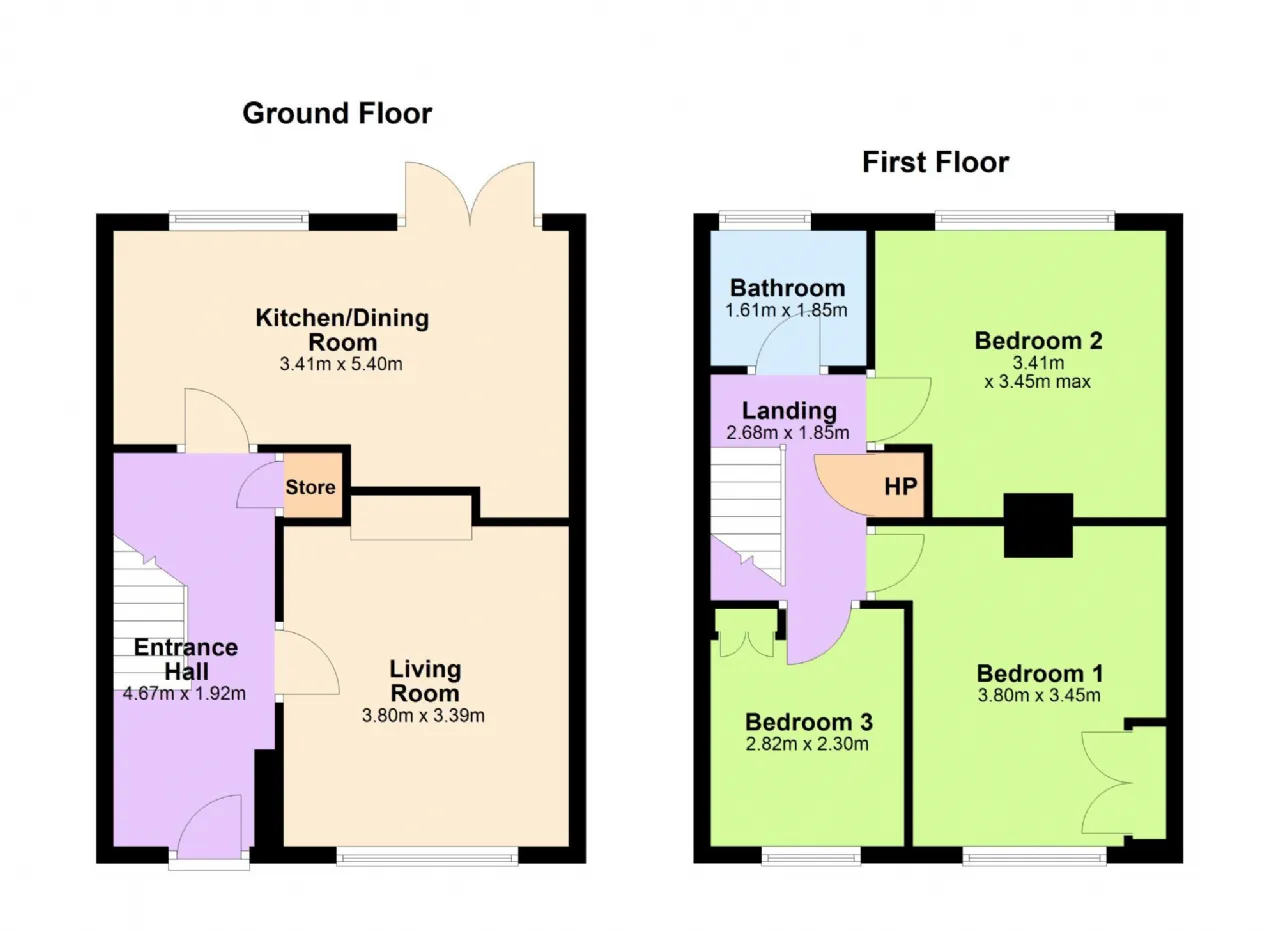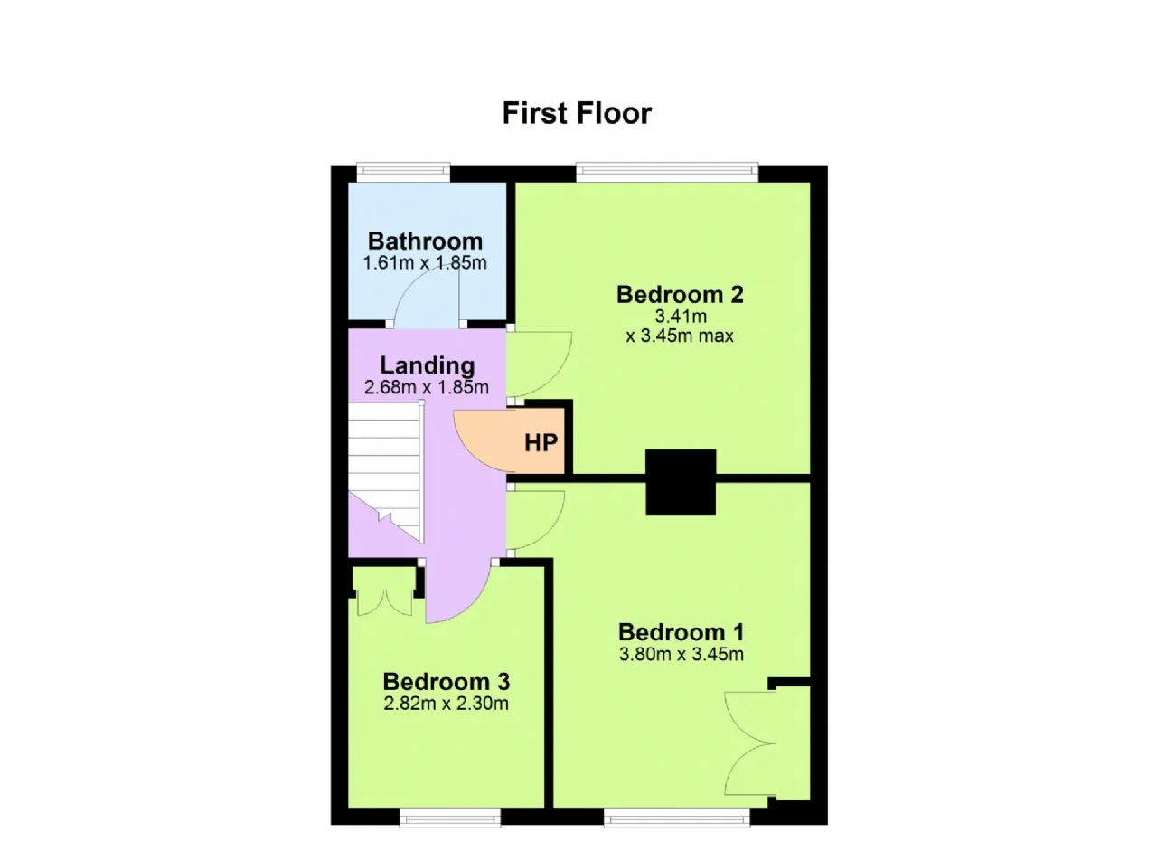 Bedroom 3 2.82m x 2.30m Single room to the front of the property. Laminate flooring, freestanding wardrobe.
