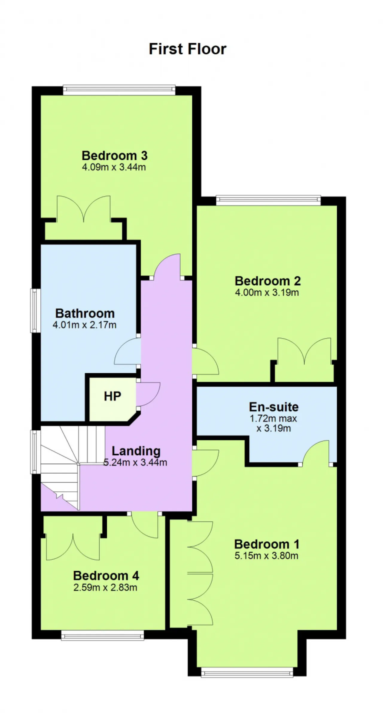 Bedroom 1 5.15m x 3.80m Large double bedroom with carpeted flooring and extensive fitted wardrobes.