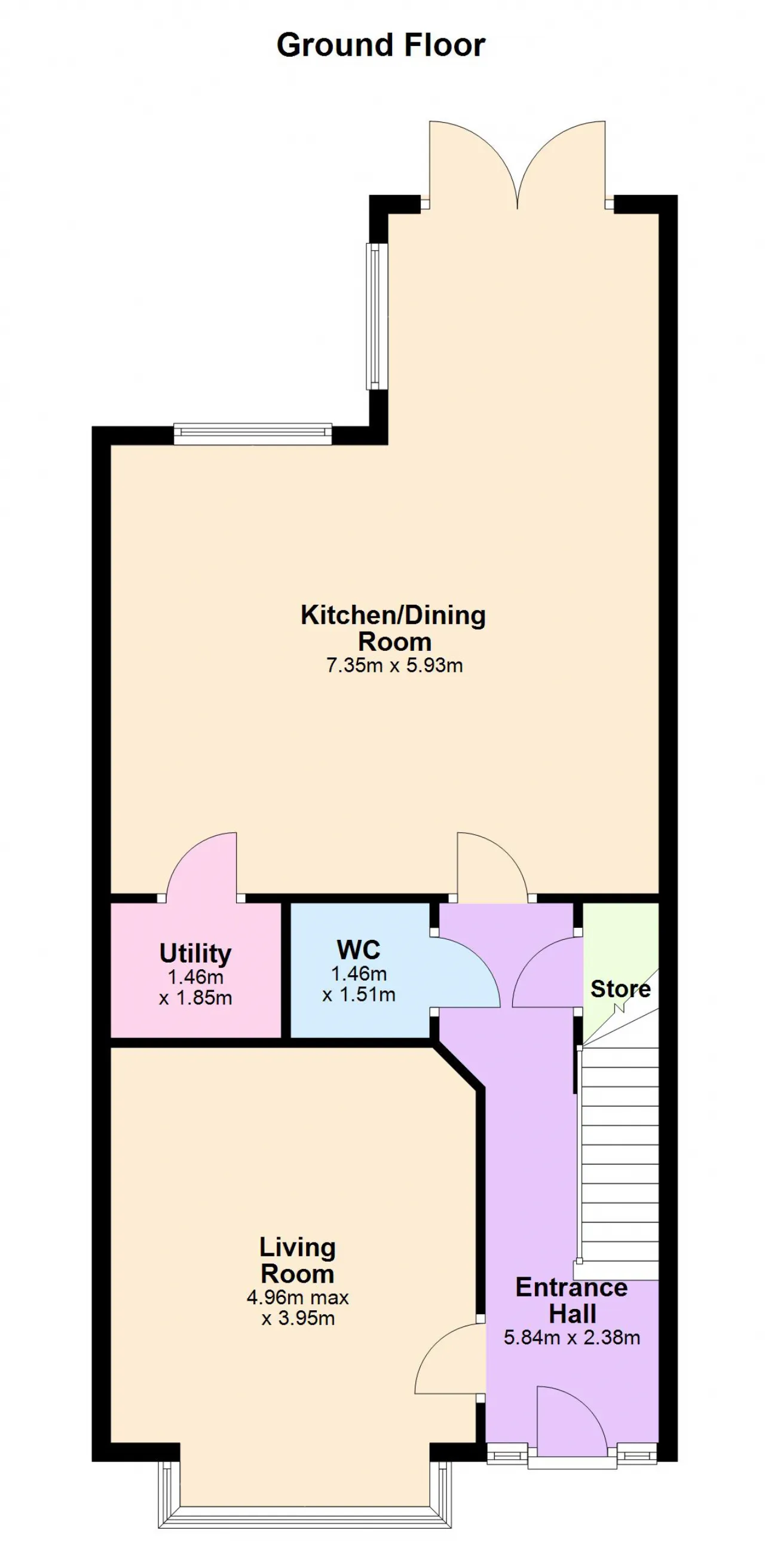 Utility Room 4.96m x 1.85m With quality fitted units & sink, plumbed for washer / dryer.