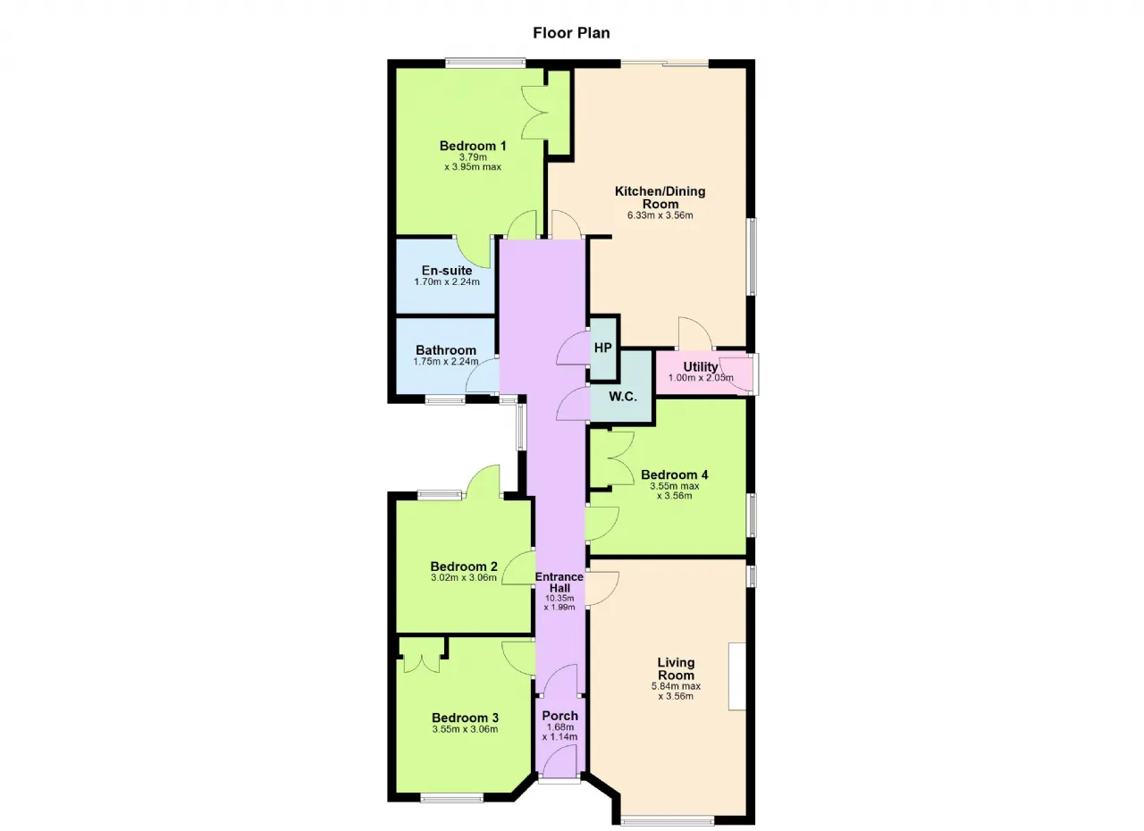 Bedroom 1 3.79m x 3.95m With extensive fitted wardrobes. En-suite with shower enclosure, WC & WHB.