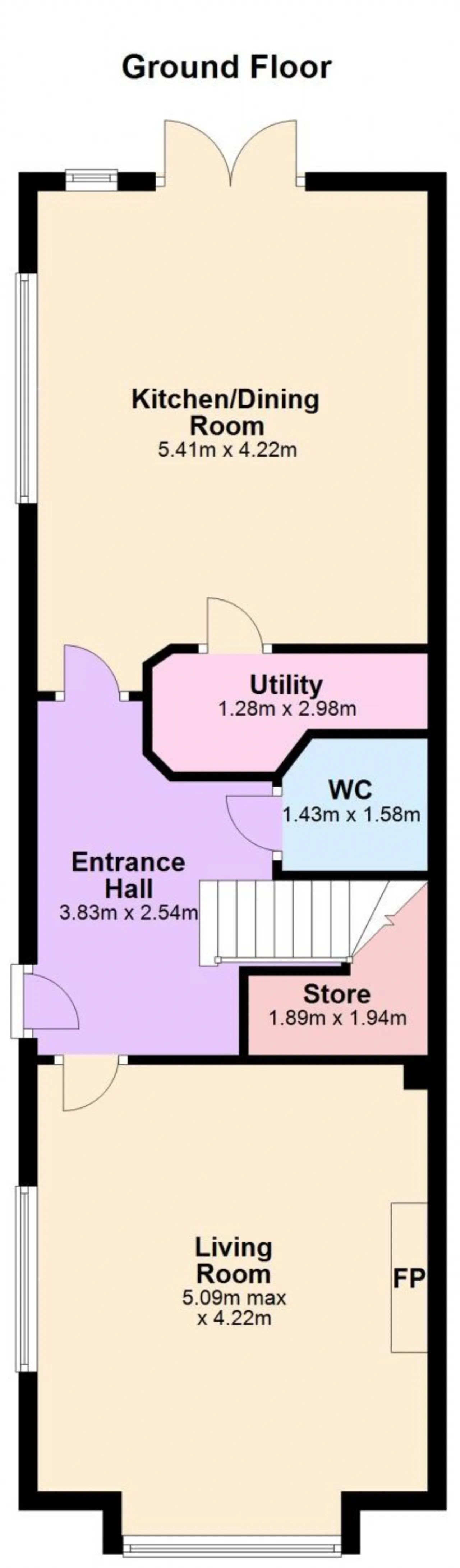 Utility Room 1.28m x 2.98m Large utility room with fitted units/work surfaces.