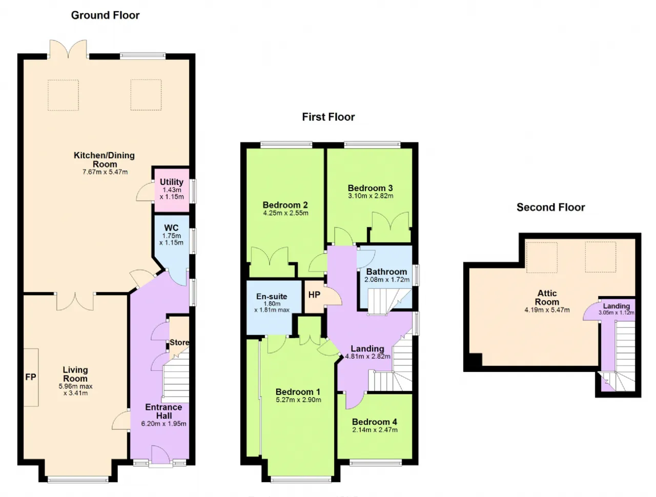 Attic Room 4.29m x 5.47m A large versatile, light filed room with 3 Velux windows. Access to attic storage