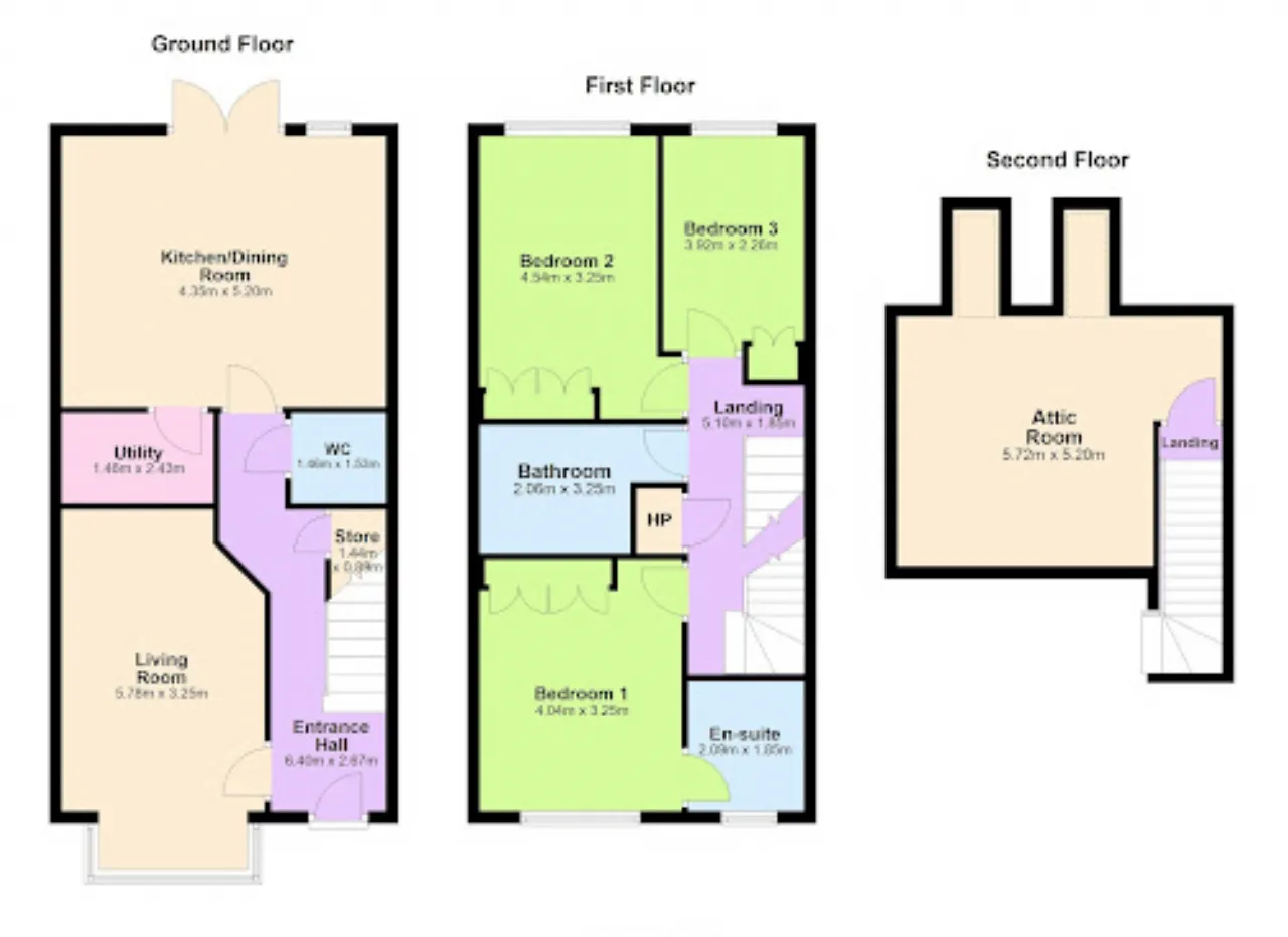 Accommodation includes; a welcoming hallway, well-appointed living room, open plan kitchen / dining room which opens on to a delightful south facing rear garden. There is also a utility room off the kitchen area. On the first floor there are 3 fine sized bedrooms (1 en-suite) and a family bathroom. While on the second floor there is a large versatile attic, suitable for a multiplicity of uses depending on one’s needs.