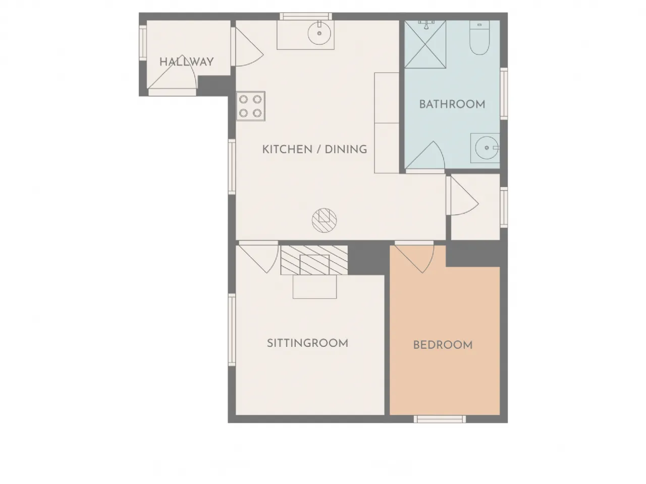The bungalow style home offers and open plan kitchen living room, two bedrooms and bathroom but offers plenty of potential for extension to the rear as needed. There are some outbuilding also on site in need of some repair but offering lots of options for the discerning buyer.
