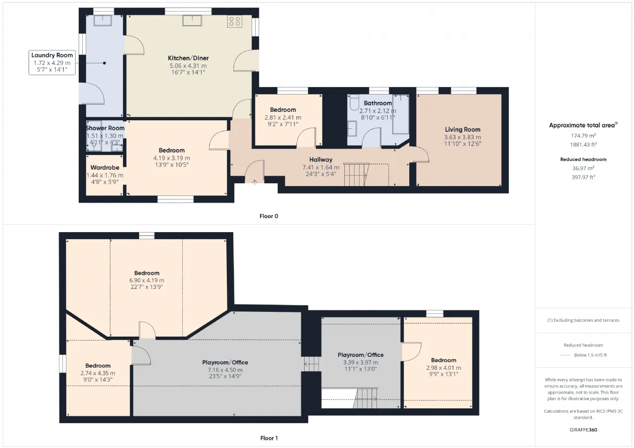 Accommodation comprises of: Kitchen/diner, utility, living room, snug room, 5 bedrooms, shower room, bathroom and two playroom/offices.