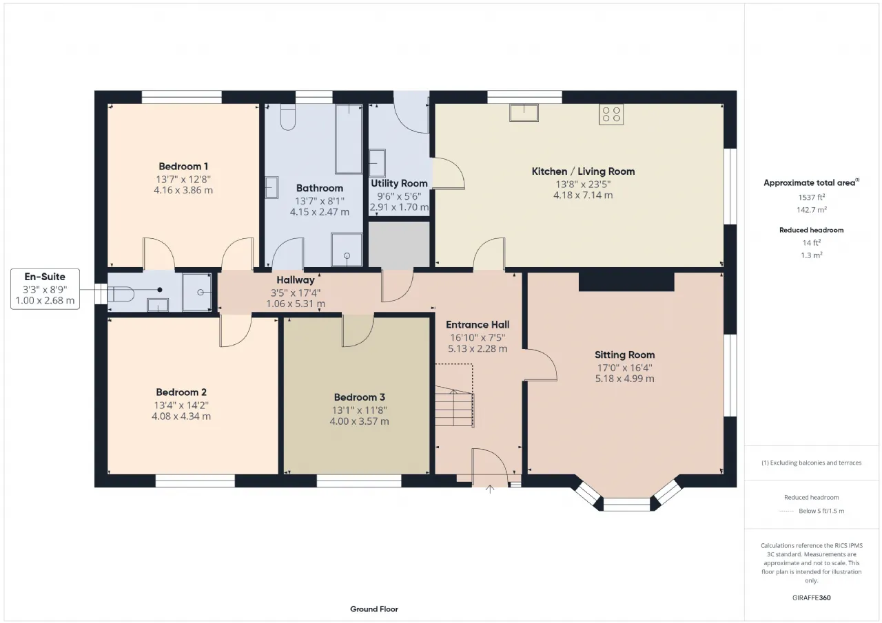Bedroom1 4.16m x 3.86m Large rear facing Master Bedroom with timber flooring and En-Suite
