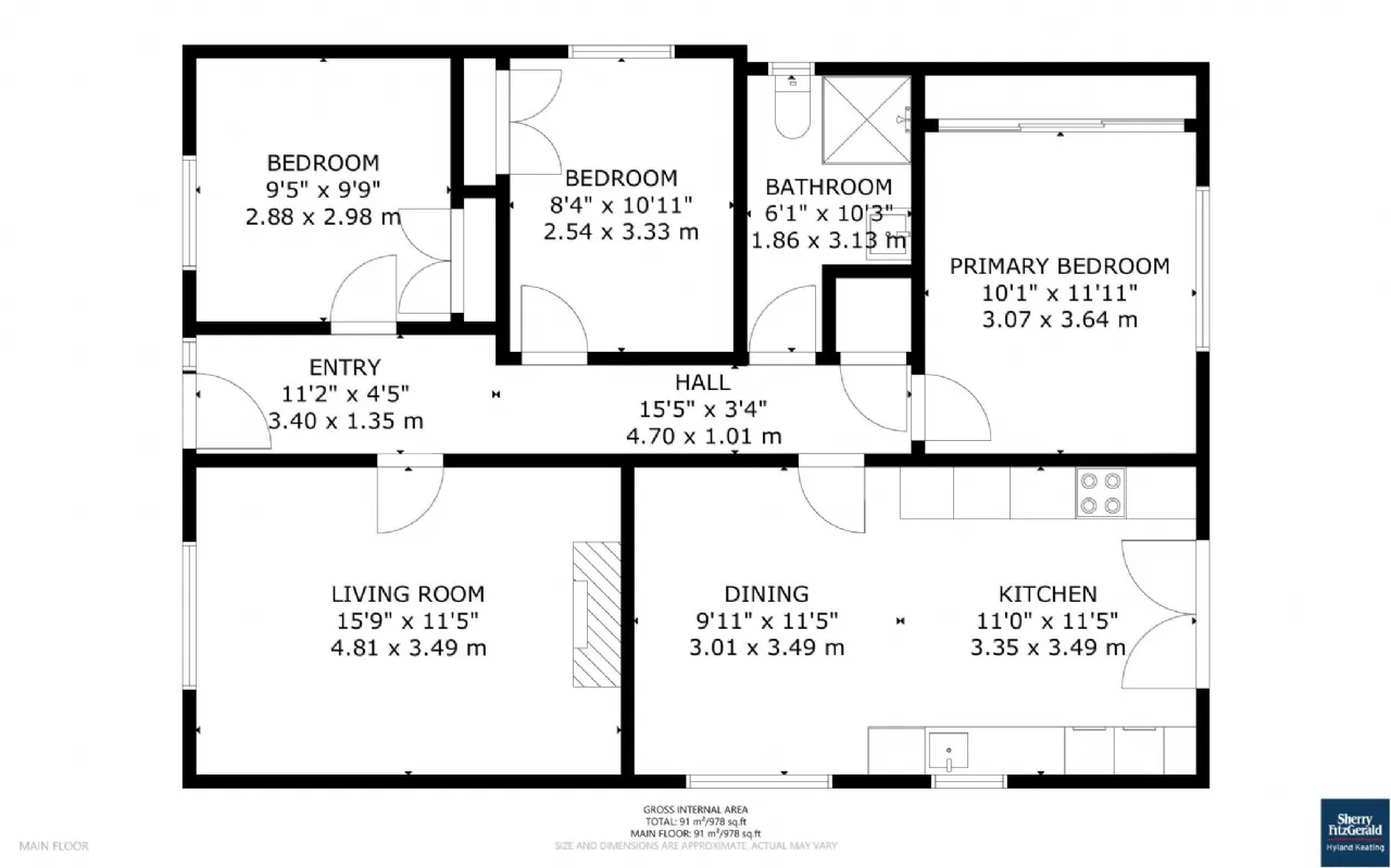 Kitchen 3.35 x 3.49m The kitchen at 44 Highfield Meadows is a bright and functional space, thoughtfully laid out to balance style and practicality. Finished with sleek high-gloss cabinetry and soft-close drawers, it offers ample storage and a clean, modern look. Key features include: Integrated electric oven and ceramic hob with a stainless-steel extractor hood Wood-look countertop and subway tile backsplash in a neutral grey tone Plumbing and space for washing machine and dryer Tall fridge-freezer and generous worktop space ideal for meal prep Large French doors open directly onto the rear garden, enhancing natural light and offering easy outdoor access Dual aspect with windows to the side and rear, creating a bright and airy atmosphere throughout the day Contemporary tiled flooring that runs seamlessly into the dining area Whether you're enjoying a morning coffee with a view or entertaining guests, this kitchen serves as a central hub for modern living.