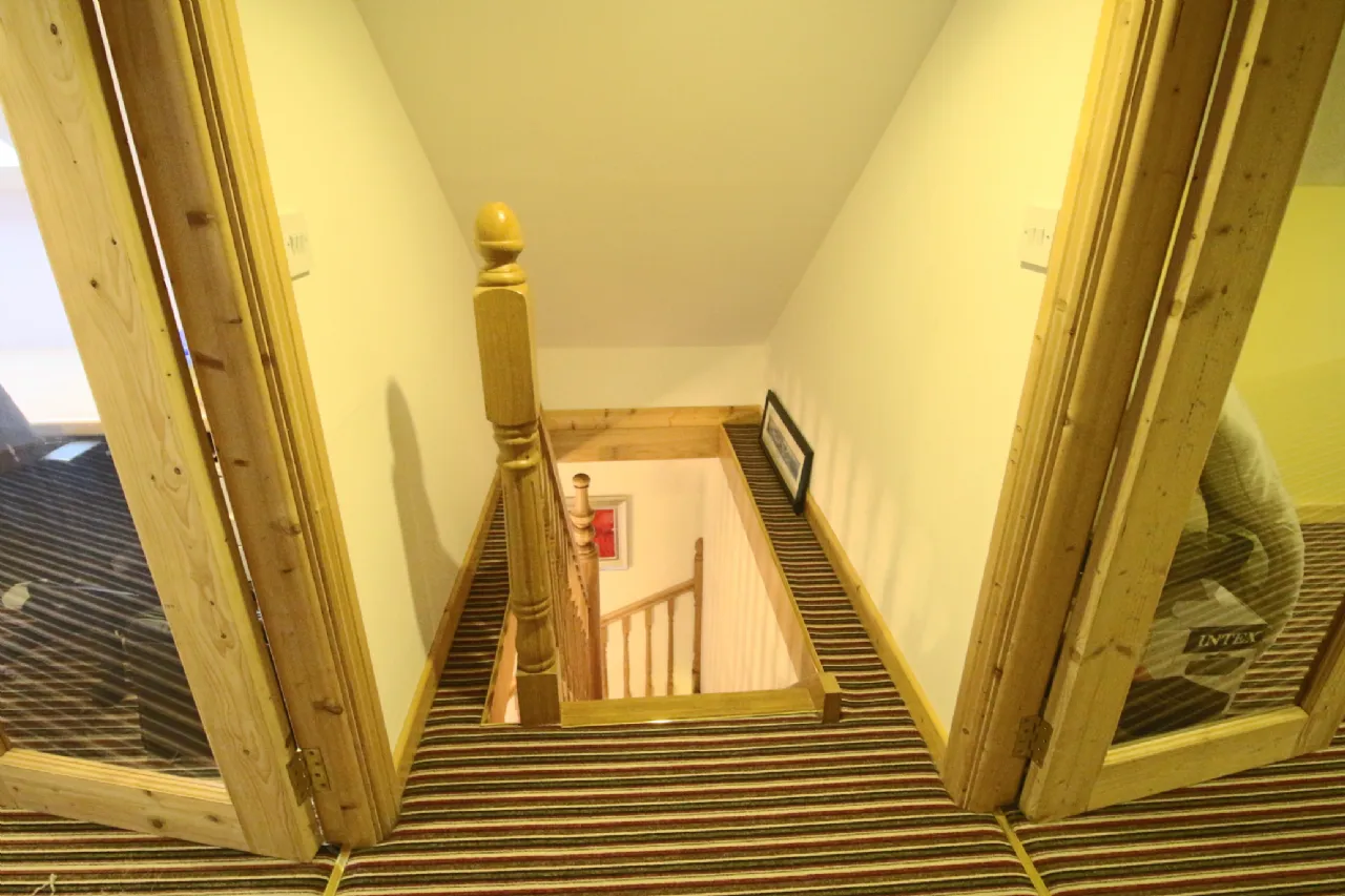 Garden Floor Hallway 12.27m² (132sq.ft.) Polished porcelain tiling, wall lights x2, radiator, Velux roof aperture, extensive fitted storage closets. Triple-height glazing feature with access door to garden