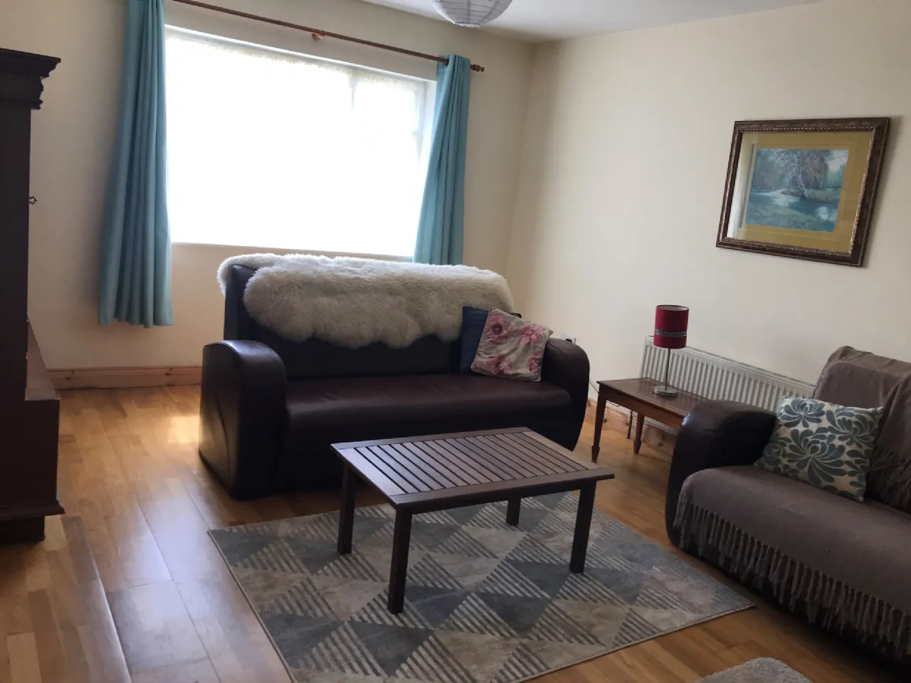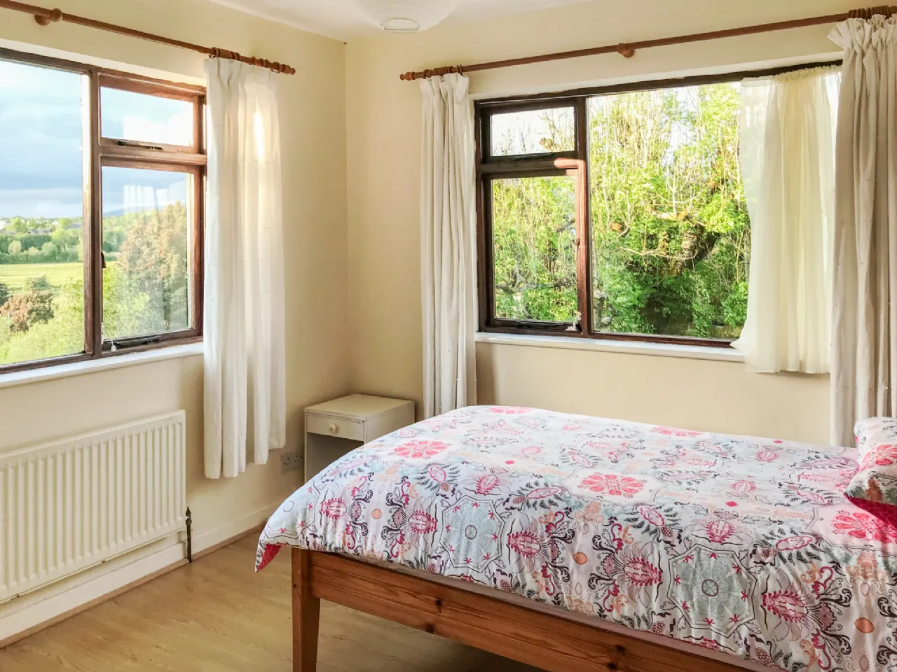Bedroom 1 3.93m x 3.05m Pleasant views onto Lough Allen and mountain, wood flooring, radiator, curtain pole & drapes.