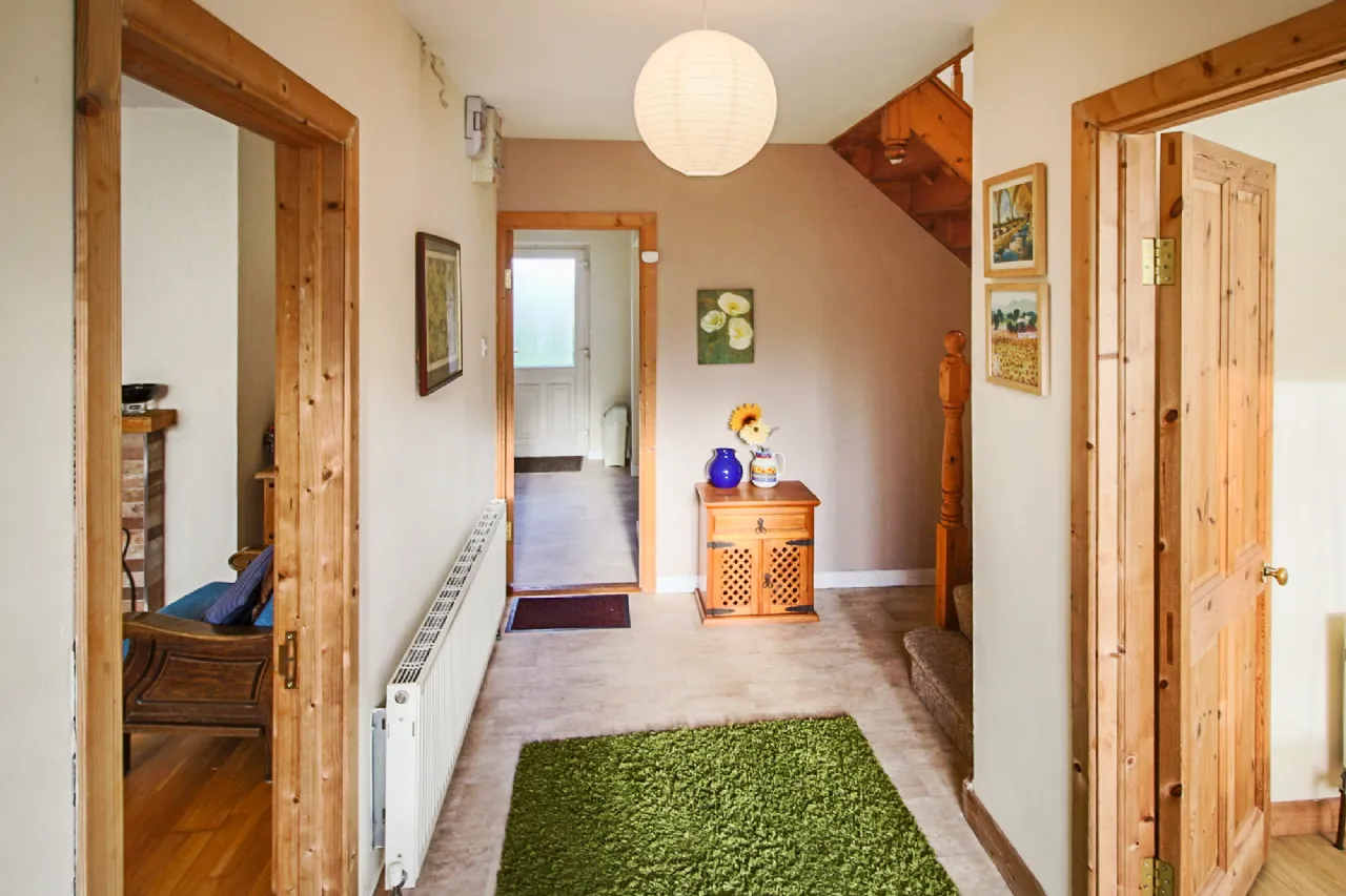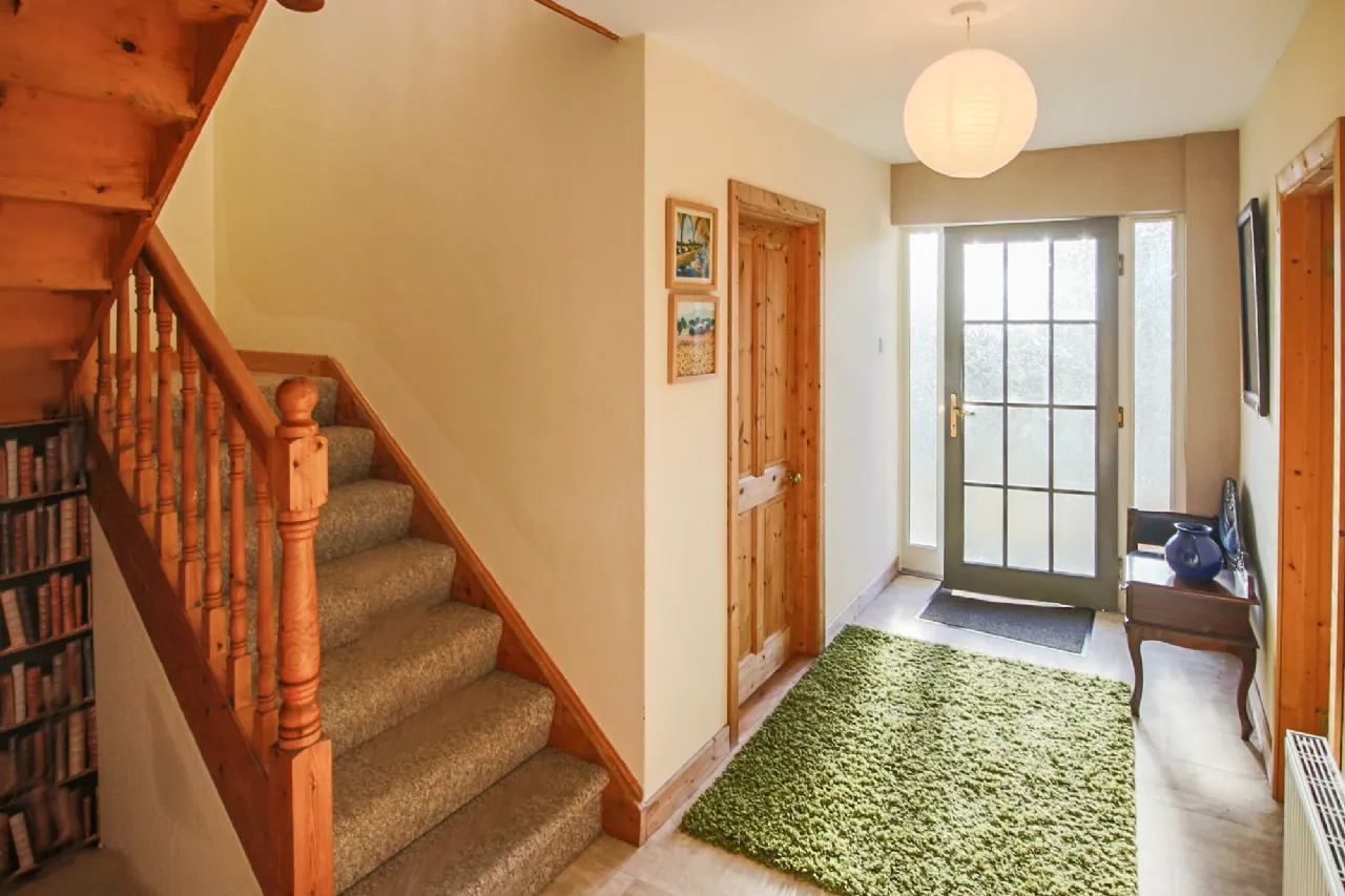Entrance Hall 10.31m2 Laminate floor tiling, radiator, carpeted stairwell to first floor.